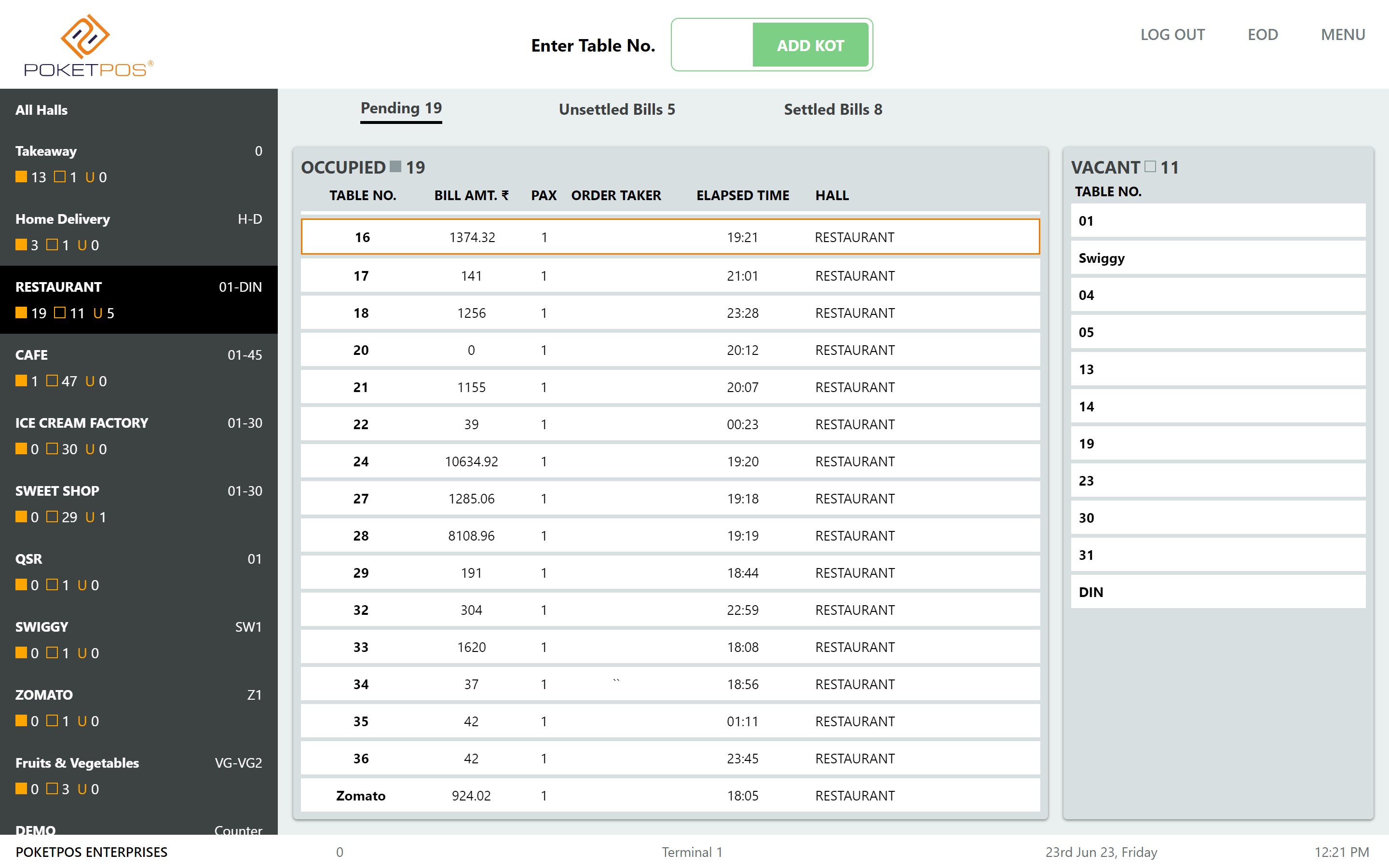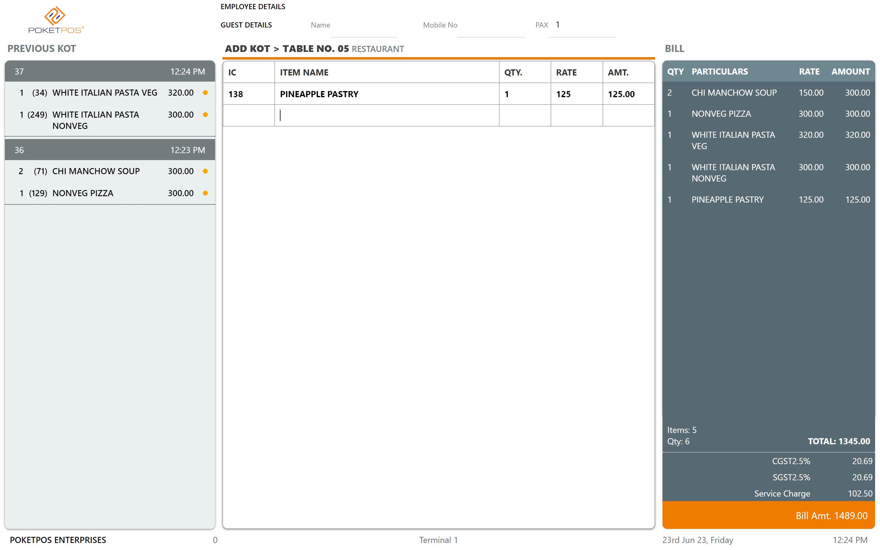 - Conveniently and promptly generate KOTs / Order slips & Invoices