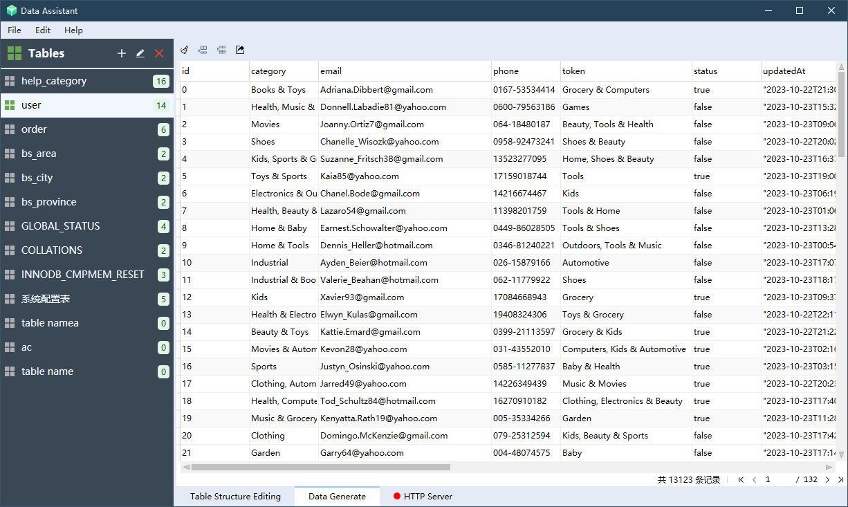 Generate large, heterogeneous, real-world data for any development, testing or demonstration purposes.