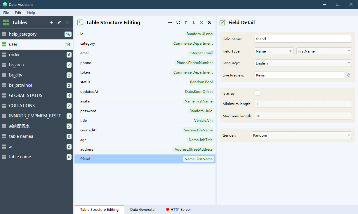 - FirstName - Get a first name. Getting a gender specific name is only supported on locales that support it.