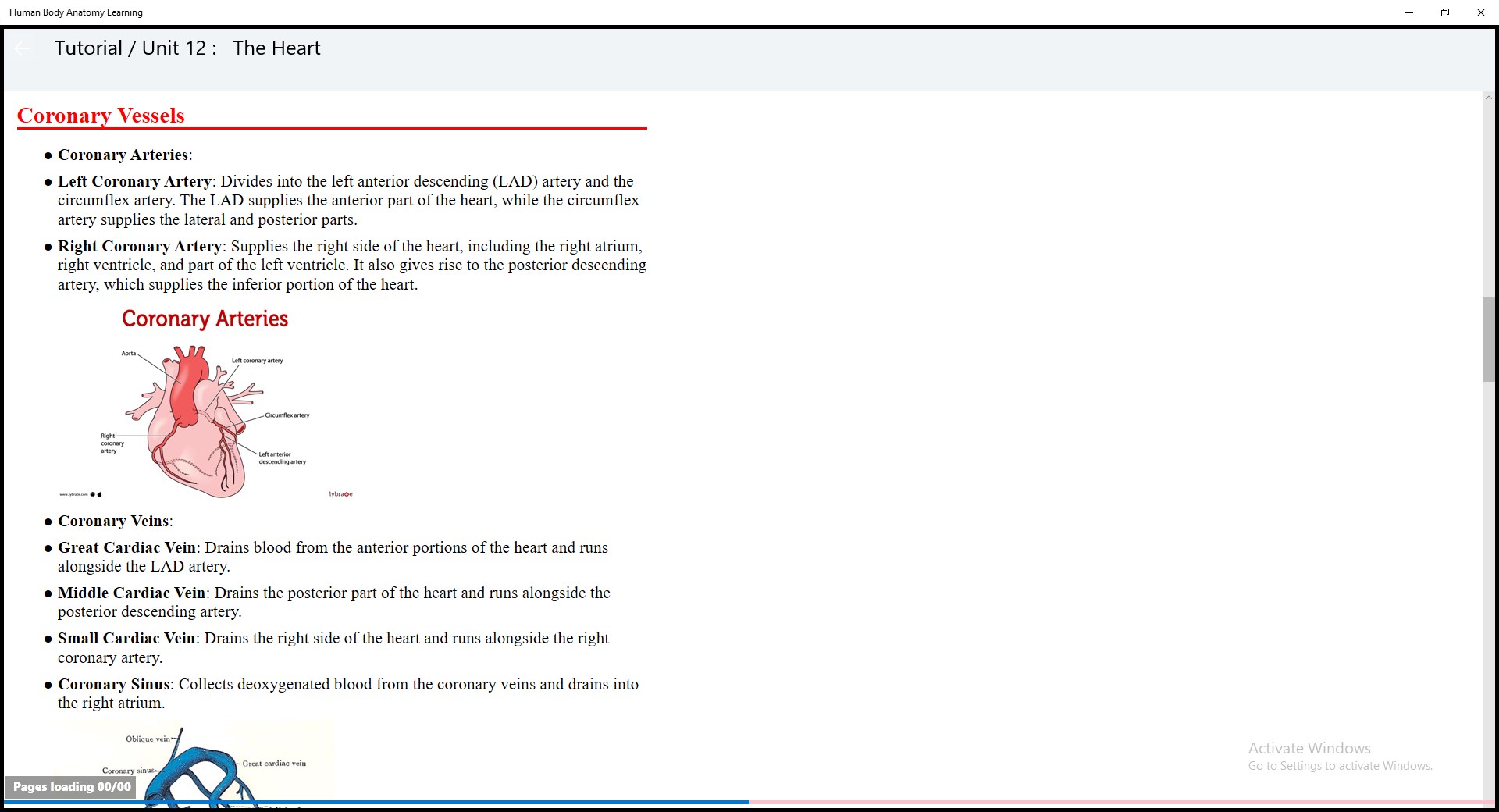 Detailed Anatomy Sections: Dive deep into various anatomical systems including skeletal, muscular, circulatory, respiratory, digestive, and nervous systems. Each section includes comprehensive descriptions and labels.