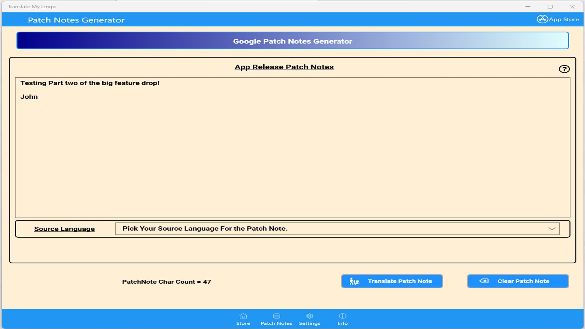 Utilizing AI This Speeds Up The Process of Localizing Your Google or Apple Store Fronts For The Languages You Support. Also, It Can Generate Patch or Release Notes For You In The Google Console Format and the Apple Meta Data Template For Updates as well. All You Have To Do Is Copy And Paste It Into The Developer Release Console And You Are Done!
