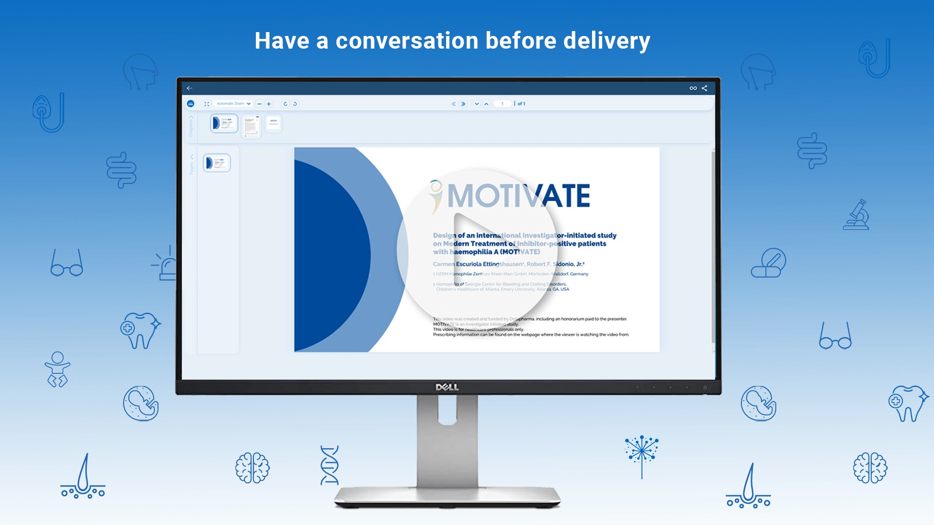 The inforMedGO app allows sales teams to show marketing materials during face to face meetings. From within the app access to the materials can be e-mailed by the sales person to the viewer.