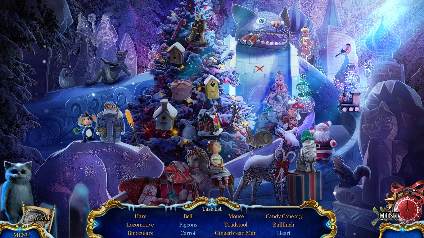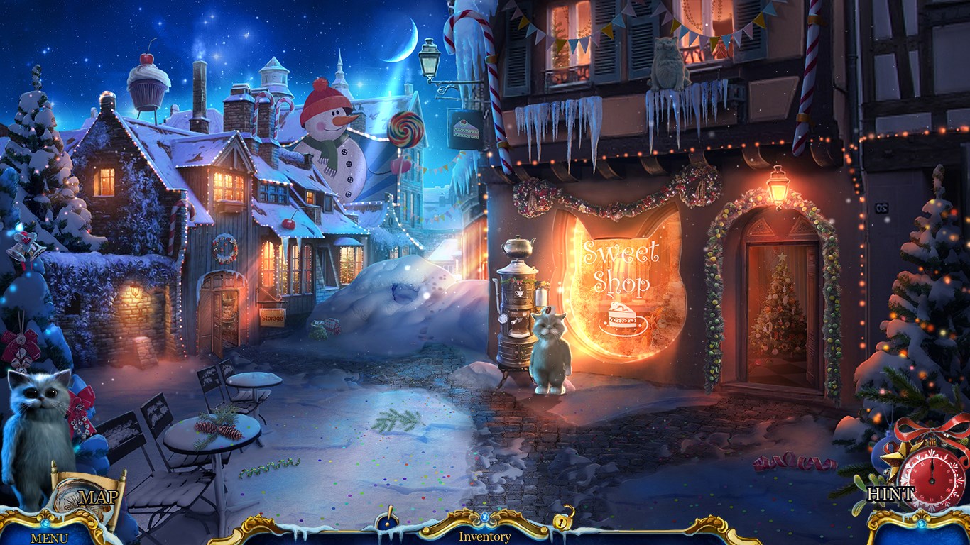 You adopt a forlorn kitten on Christmas Eve, but little did you know what that innocent cat would get you into. It seems a thief has ransacked Santa's purrrfect little toy town, stealing the Christmas star! Why would anyone want to stop Christmas from coming? Find out in this family-friendly game that's just right for one and all during the holidays. The festive soundtrack will put you in the Christmas mood! And you'll love the variety in the hidden-object puzzles and enjoy the fresh new mini-games.