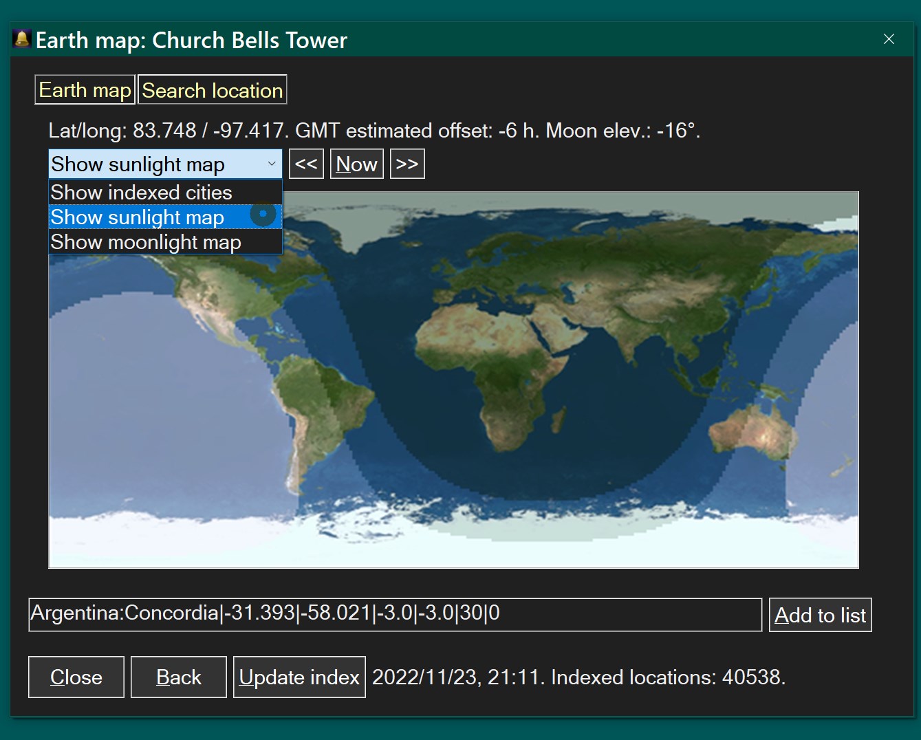 - earth map with dynamically generated moonlit or sunlit areas on the planet