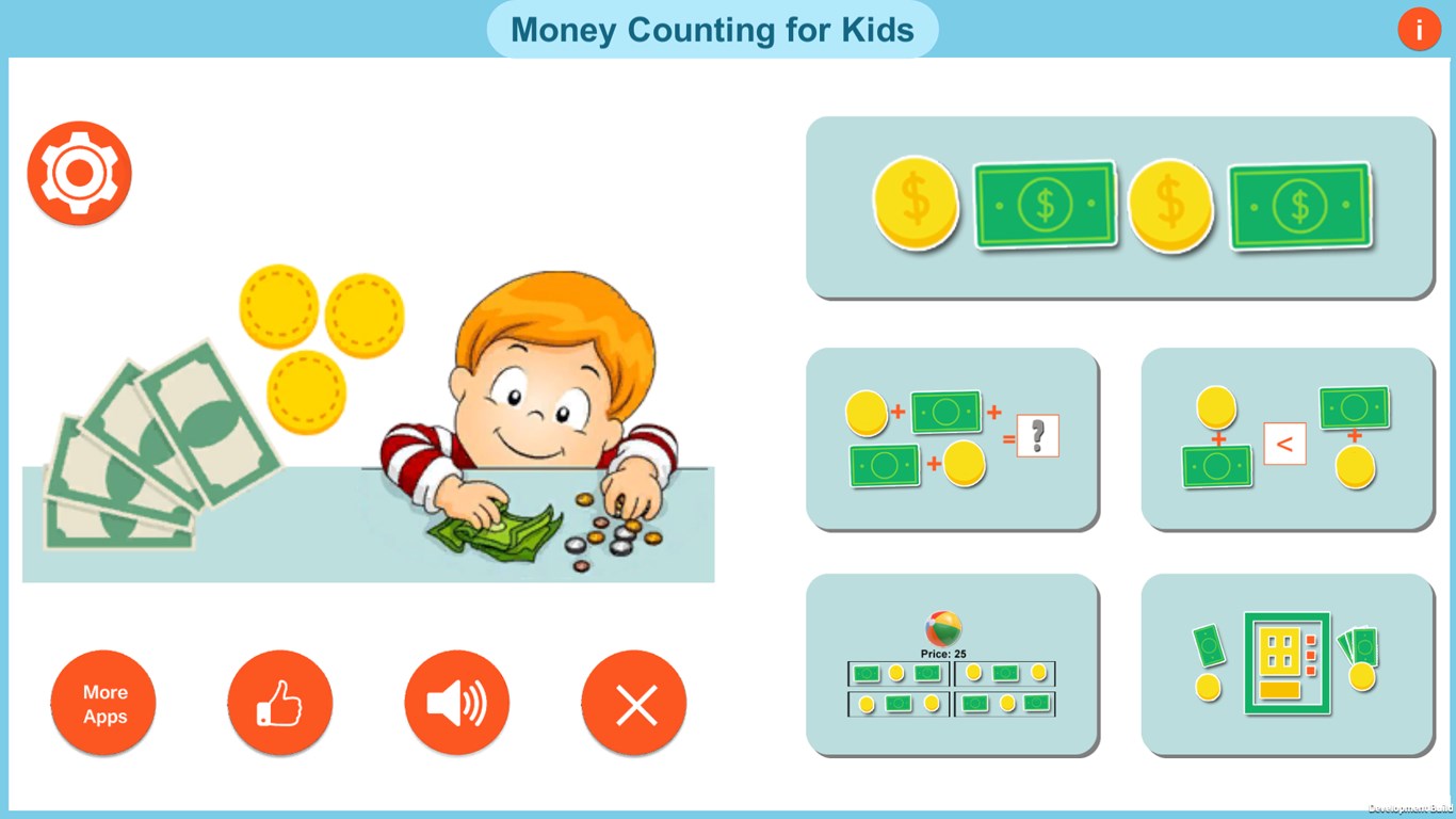 Kids Money Counting.Learn how to count money.Nine languages supported.10 Currencies SupportedMoney Addition & Guessing.Learn Coins and Bank Notes
