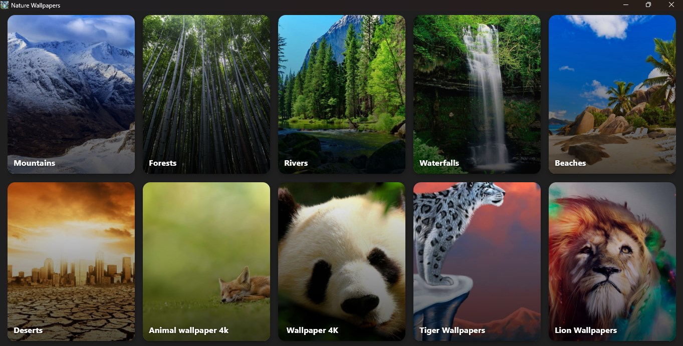 Categories and Themes: Navigate through our intuitive interface, categorized with various themes to help you find the perfect wallpaper for every mood and occasion. Whether you seek a peaceful retreat, an inspiring view, or a mesmerizing night sky, our app allows you to explore different categories such as Mountains, Forests, Beaches, Wildlife, Landscapes, and many more.