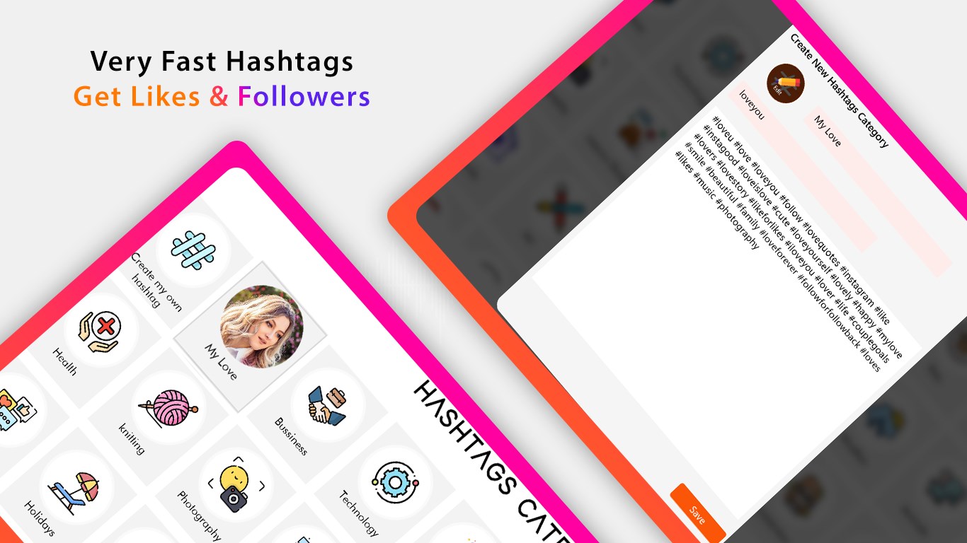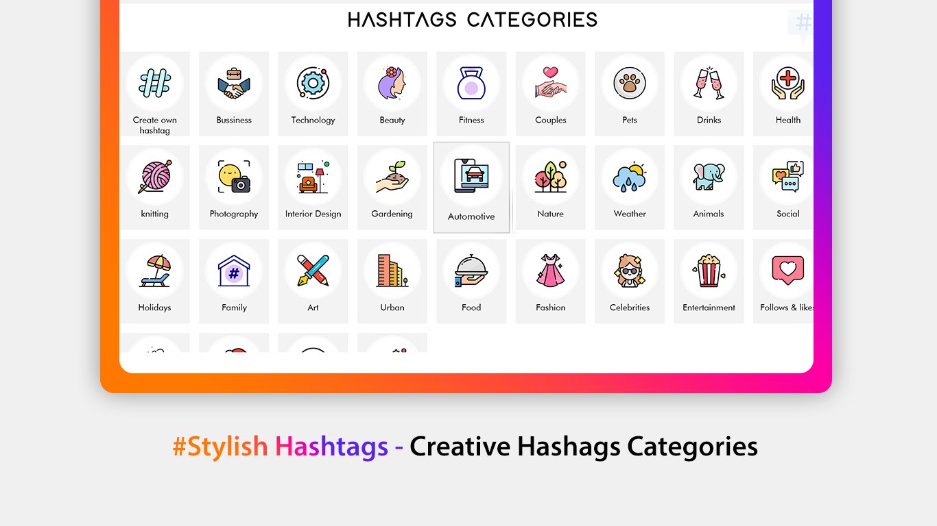 - Simple and easy-to-use, easy to find tags, mix hashtags, create your own hashtag bank.
