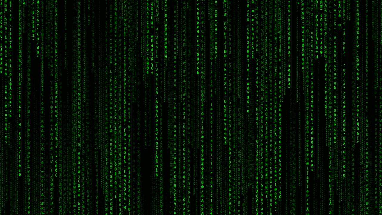 Desktop lock screen displaying the movement of letters, numbers and other symbols in the style of the movie 'The Matrix' with sound and mouse support