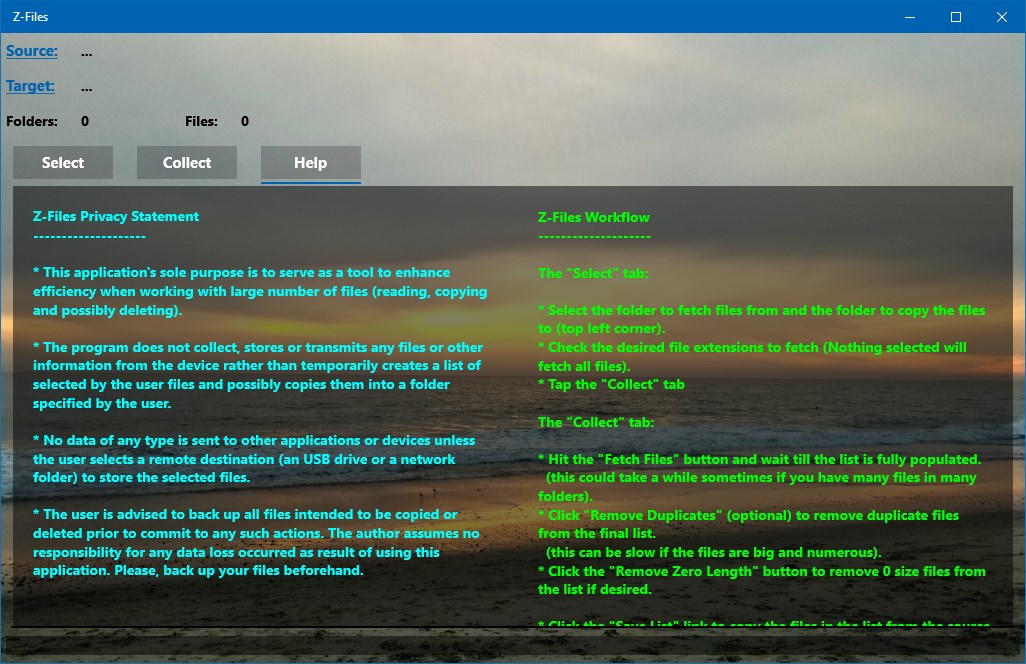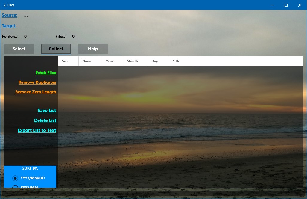 This handy app allows the user to scan a chosen source folder on a device and create a list of the found files. Duplicates are removed along the way (if desired) and the file list is sorted and copied into the target folder. Optionally, the files from the final list can be deleted from the disk. A text file containing the list with the files can be exported. Simple and useful.