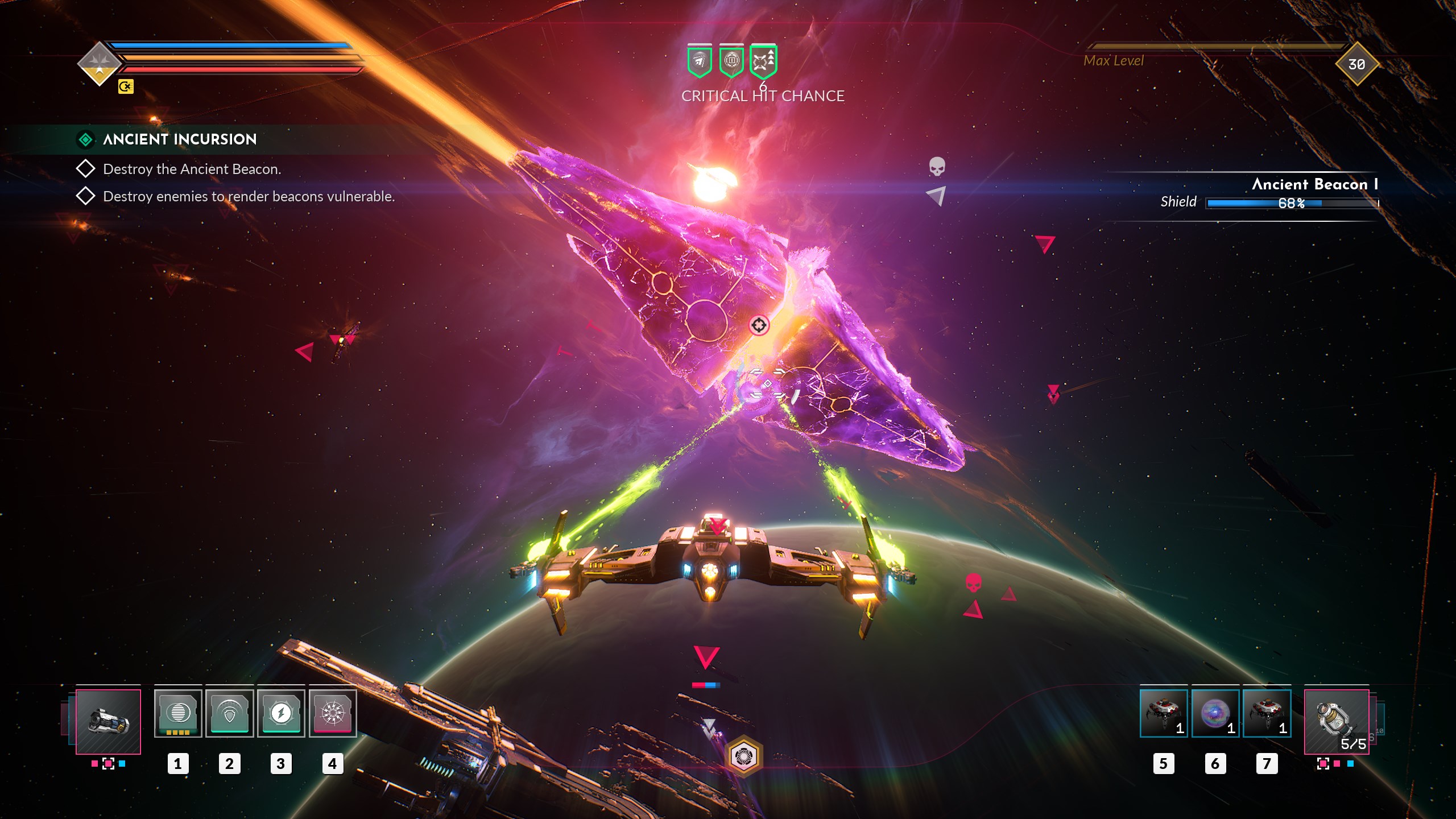 Hunt for the next better gear and be ready to constantly re-evaluate your current setup. Look for loot that fits your playstyle but be willing to leave your comfort zone and try something new. Be ready to find and exploit synergistic effects between equipment, perks, devices, and ships to fully maximize their potential.