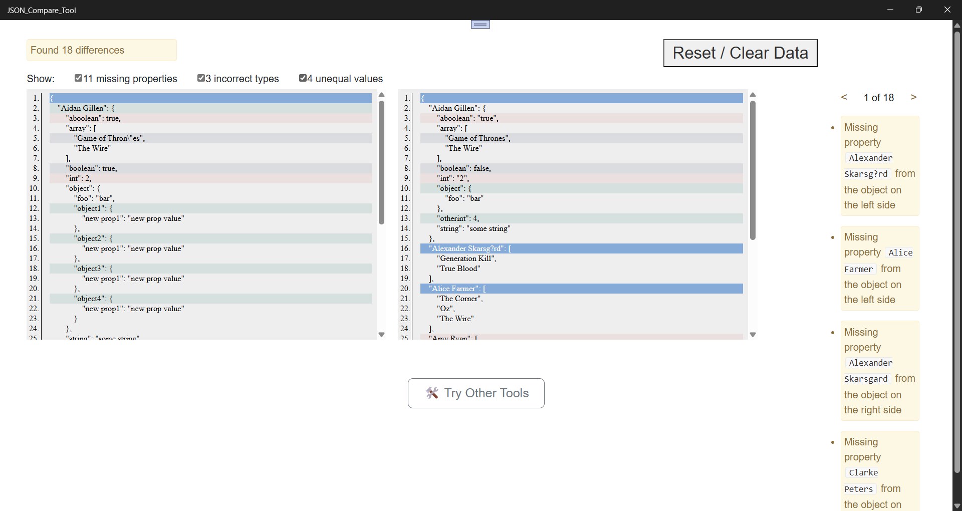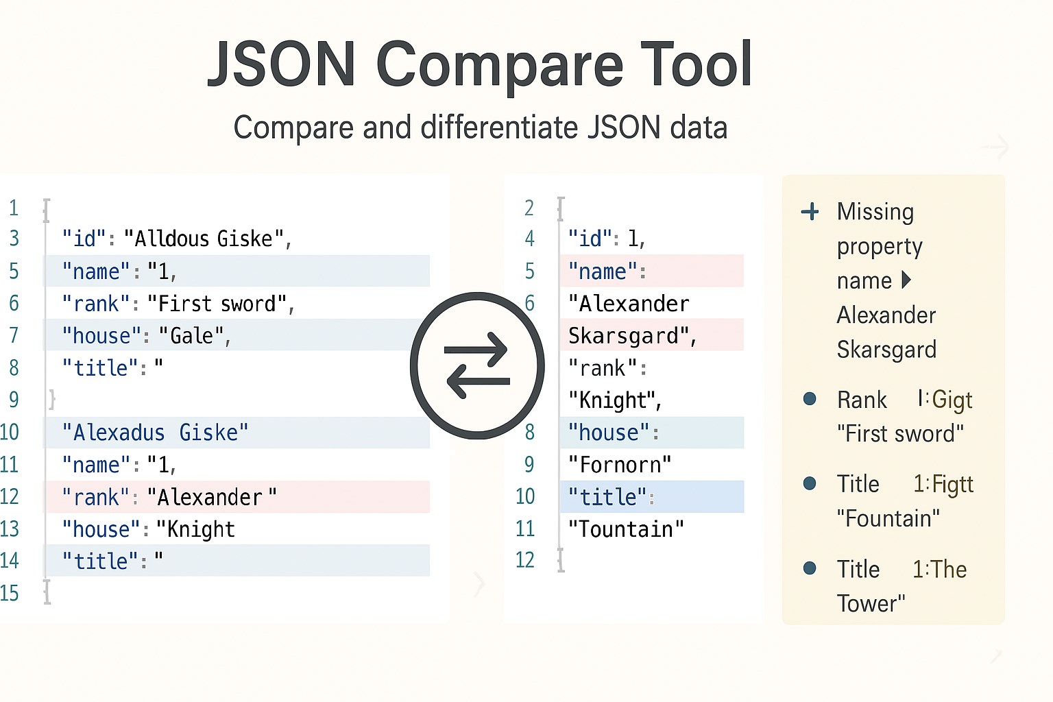 JSON Compare Tool is a powerful yet simple app that helps developers and data analysts easily compare two JSON objects or files side by side. Whether you're debugging APIs, inspecting configuration changes, or simply checking data differences, this tool saves you time with a clean, responsive interface and instant visual feedback.