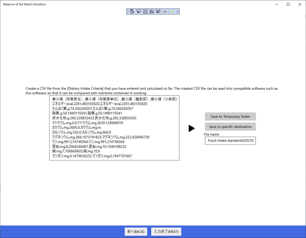 Enter the ingredients used for cooking and calculate the amount of nutrients.