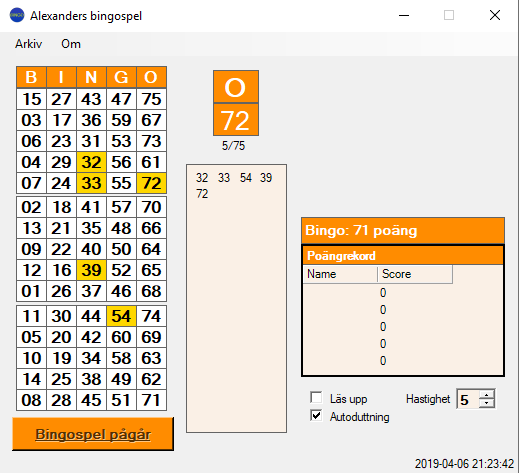 Alexanders bingospel är ett gratis bingospel där du spelar bingo utan behöver tänka på plånboken. Du vinner ingenting men får spela bingo och kan komma på topplistan om du får bingo snabbt.