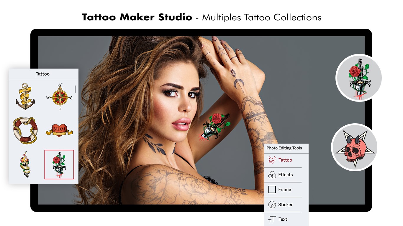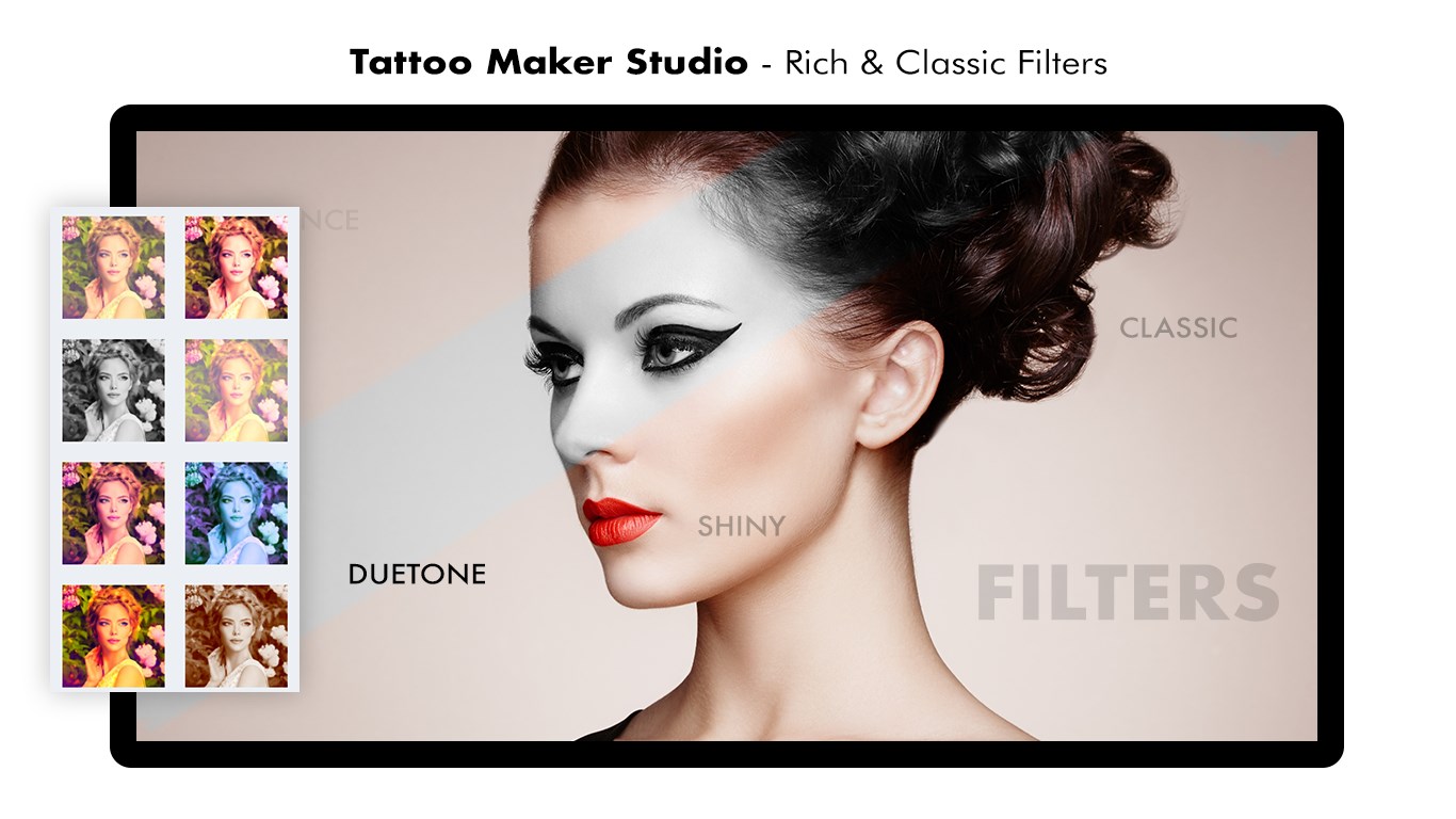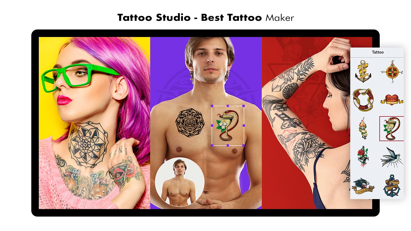 Create brand new tattoo anywhere on your body with this ultimate Tattoo Maker. Draw dragon tattoo, Kanji Name, flowers, or other antiques and show off in you profile photo.