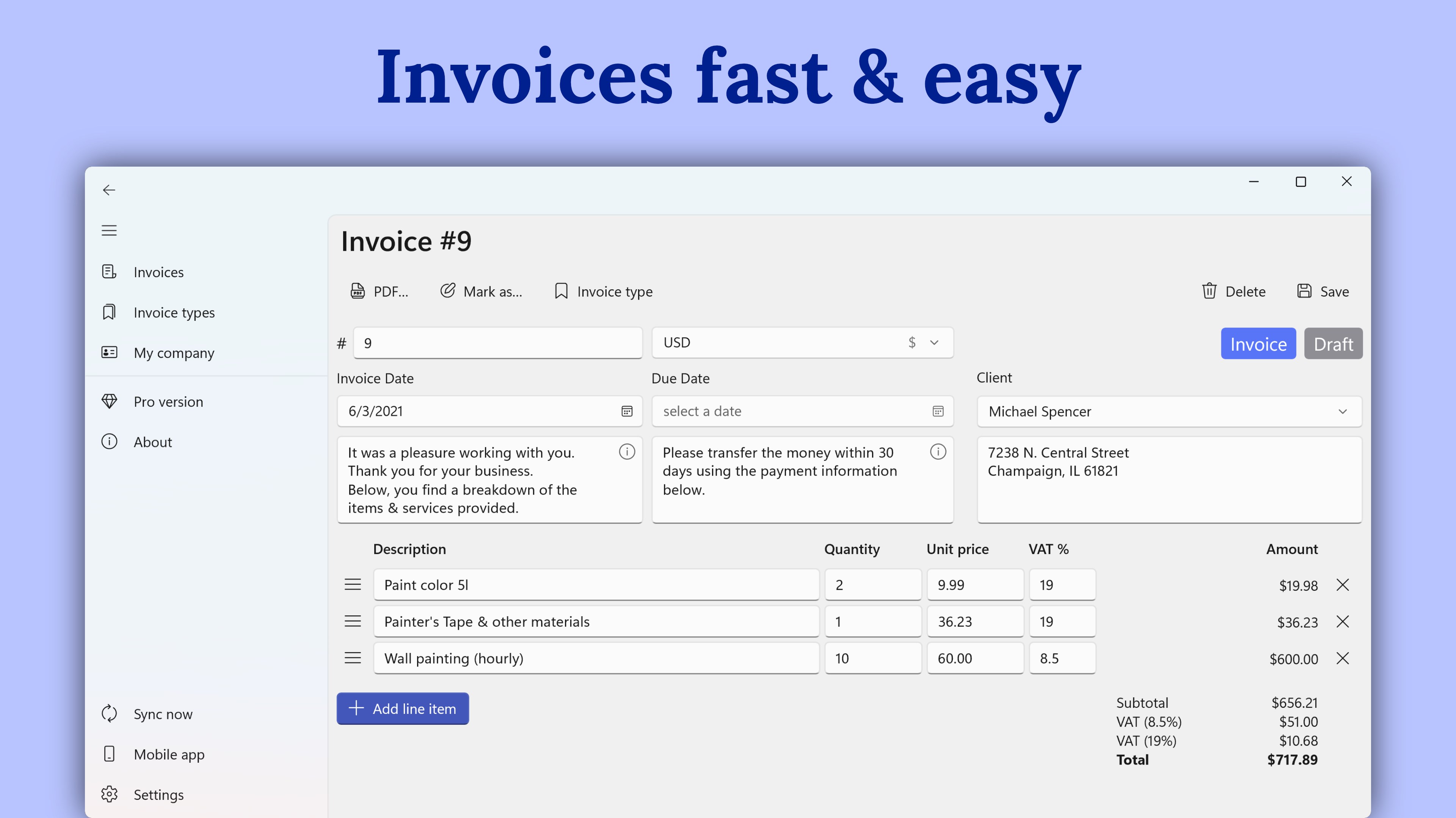 • Write invoices on all your devices - PC, laptop, tablet & smartphone