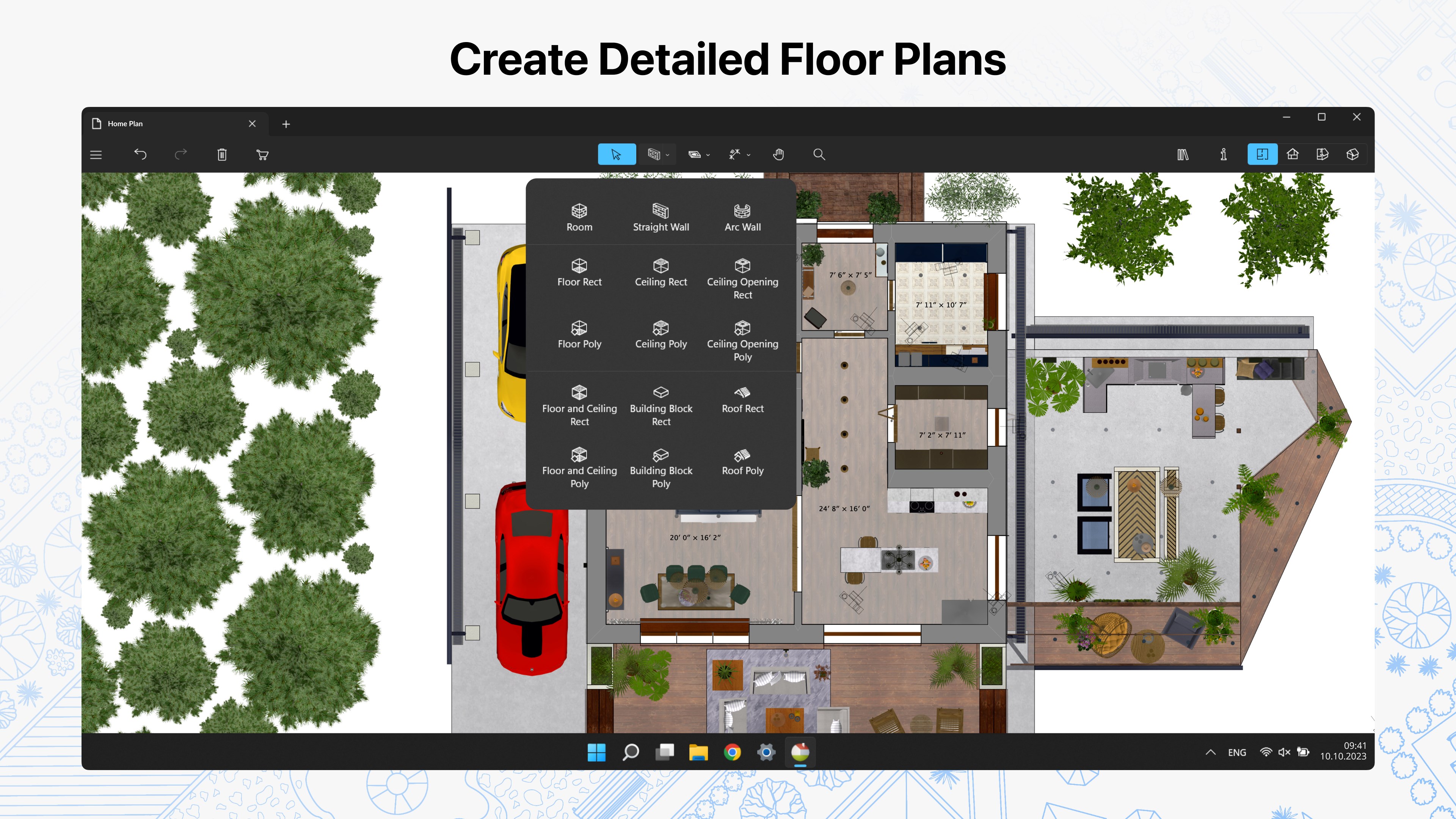 • Create detailed 2D floor plan layouts;