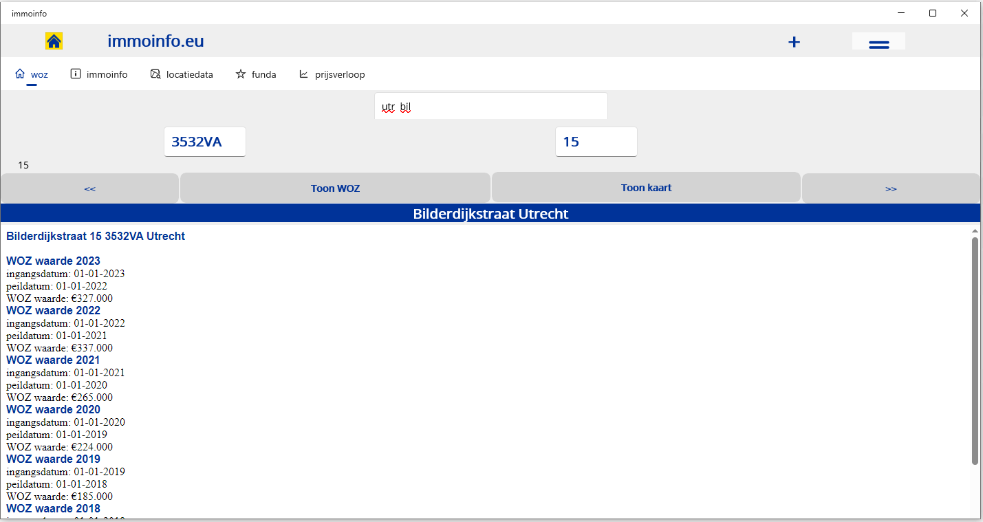 immoinfo en WOZ waarde huizen. Direct de woz waarde en immoinfo van de woningen op locatie. Zoek op de kaart, op adres of postcode.