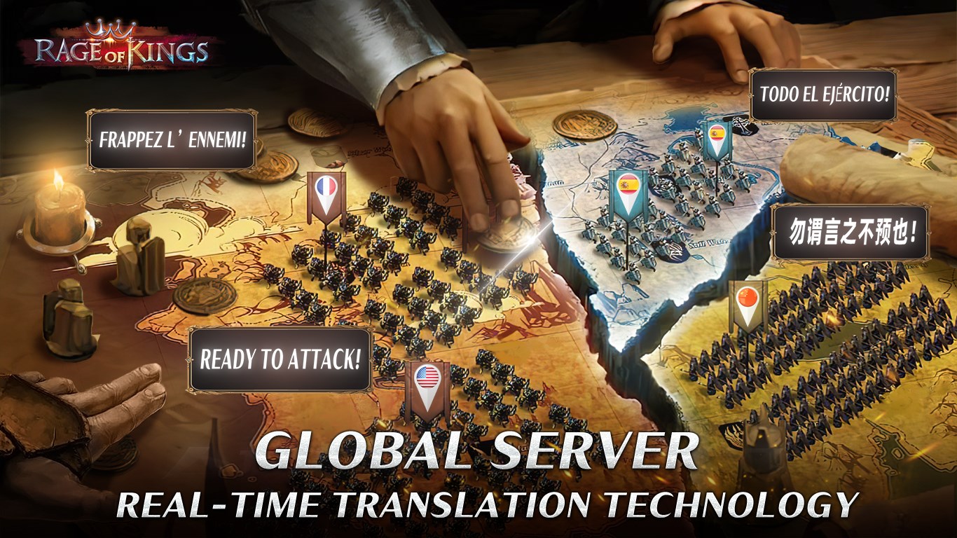 Rage of kings, can communicate with Google Play, iOS Store and PC data. Global unified server, real-time war, you will compete with players from various countries and regions! Language communication is barrier-free, real-time translation can be switched at will, global competition, no pressure, no borders!