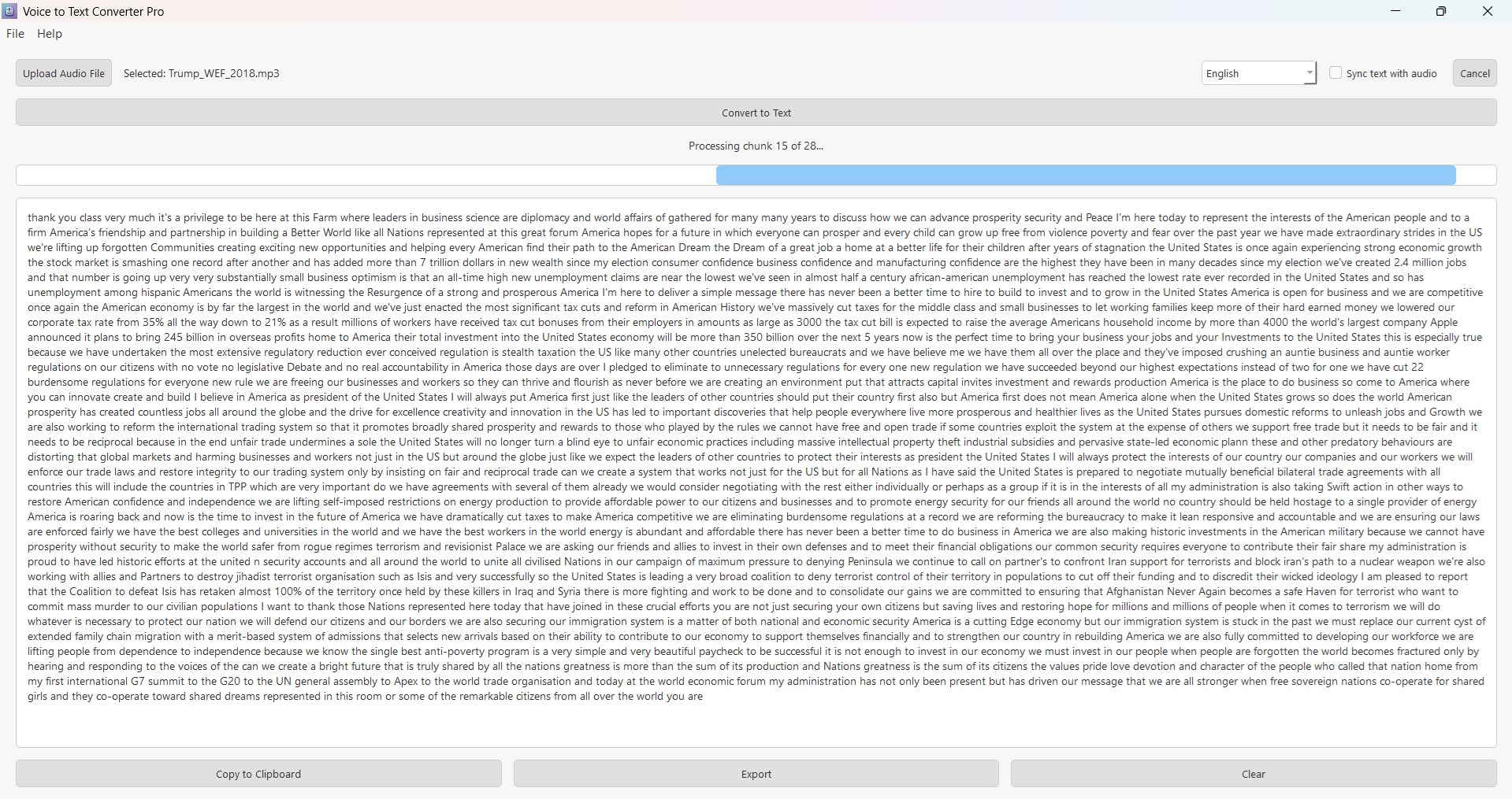 Voice To Text Converter Pro supports all audio formats and languages worldwide, enabling seamless conversion of large files into accurate, editable text. Process lengthy recordings with high precision and speed—perfect for documentation, note-taking, and transcribing audio content.