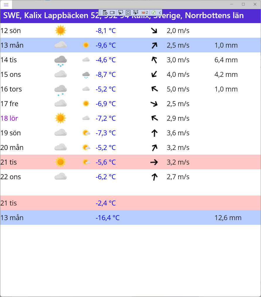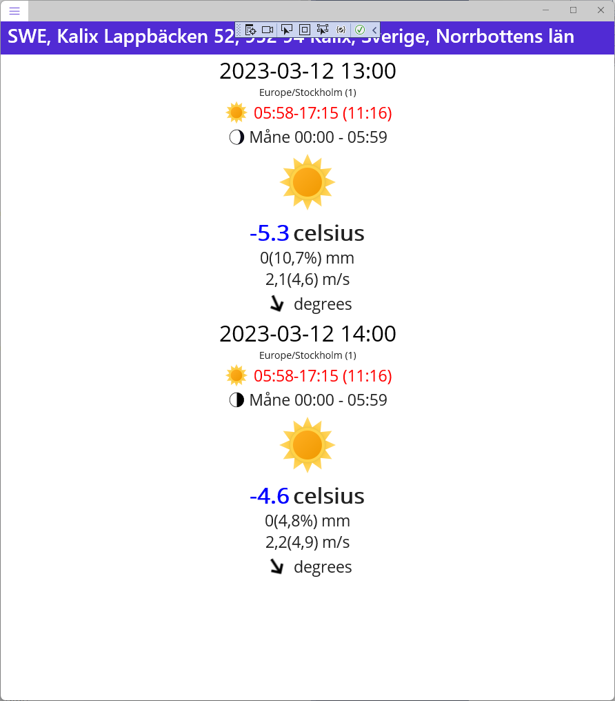 jsWeather ger dig en 10-dagars-väderprognos med både detaljer och översikt. Prognoser kan visas för din nuvarande position eller sparade fasta positioner.