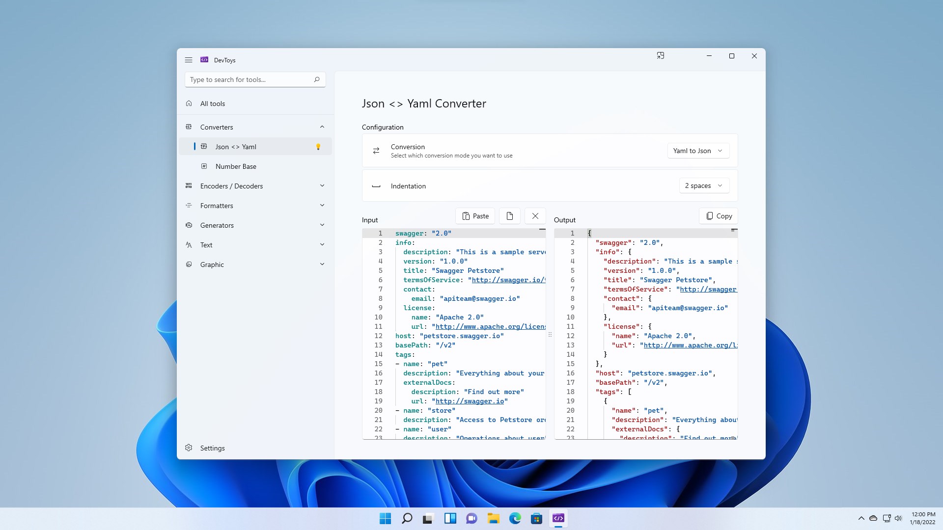 DevToys helps in everyday tasks like formatting JSON, comparing text, testing RegExp. No need to use many untruthful websites to do simple tasks with your data. With Smart Detection, DevToys is able to detect the best tool that can treat the data you copied in the clipboard of your Windows. Compact overlay lets you keep the app in small and on top of other windows. Multiple instances of the app can be used at once.