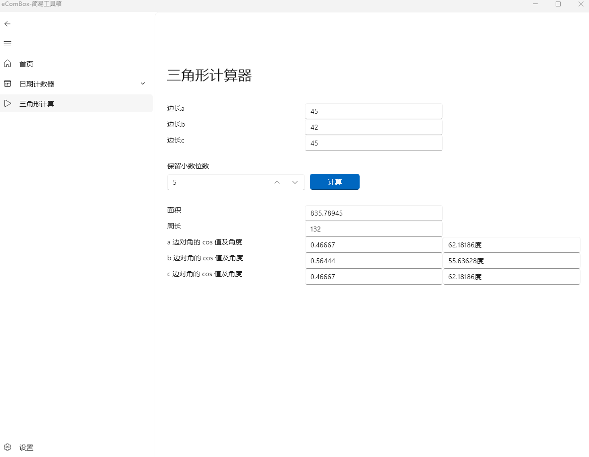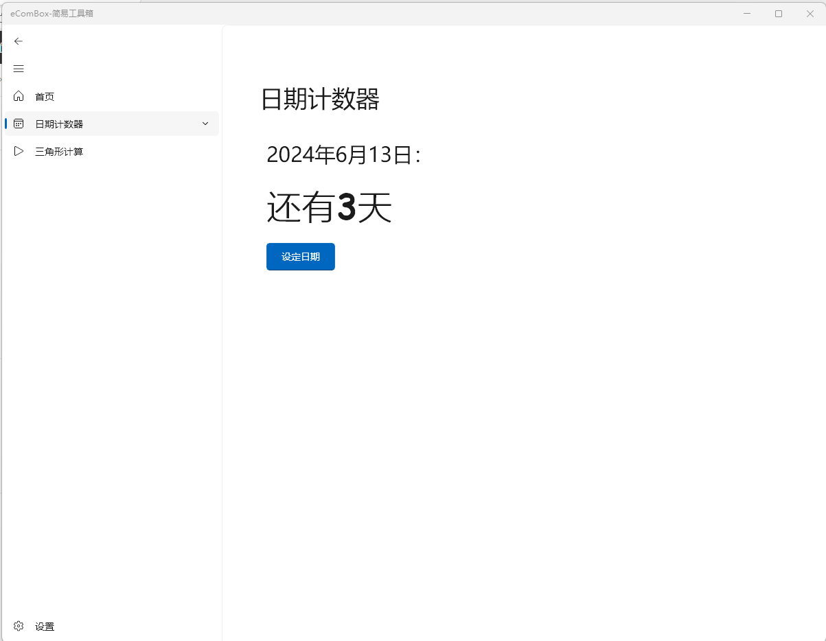 eComTer 是一个简易的工具箱,可以计算日期倒计时,解三角形。目前还处于早期开发阶段,欢迎大家提出建议
