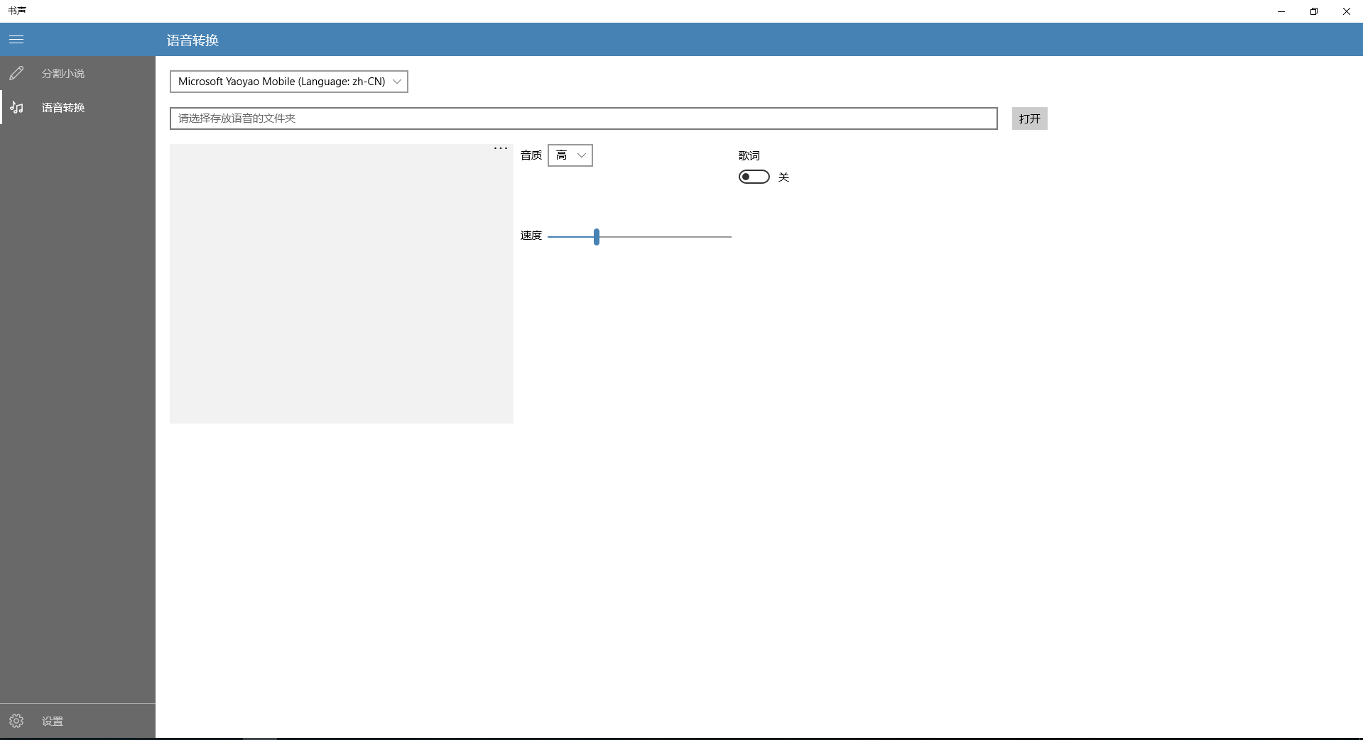 自己做饭的时候想听书,但是大部分真人朗读的小说,感情把握不准,影响自己对人物的理解,而且真人朗读速度很慢,还经常断更。经过尝试之后,发现Win Metro的TTS听着最顺耳,所以便写了这个软件,一开始只是想自己用,后来决定分享出来给那些和我有同样需求的人。本人是业余的,这是我人生第一个软件,如果喜欢,可惜付款请我喝杯茶,感谢各位。