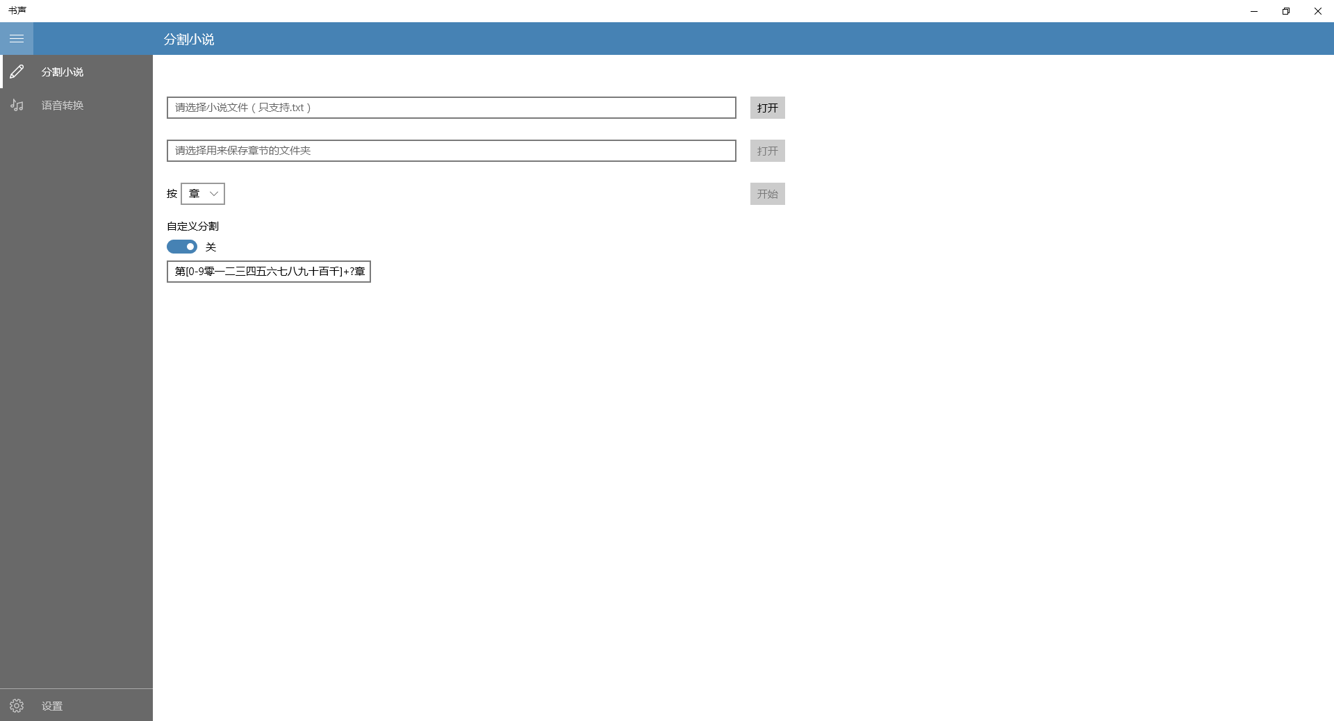 按章节分割小说,支持自定义分割。将txt转成mp3语音。