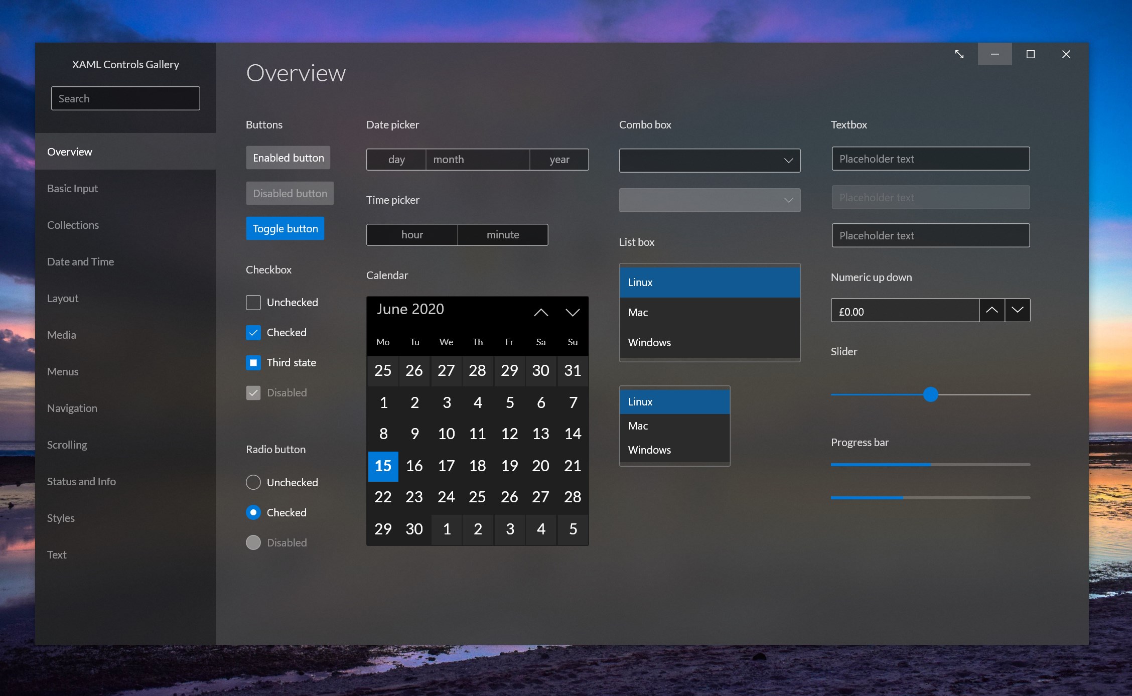 Gallery app demonstrating the Avalonia Cross Platform UI Framework.