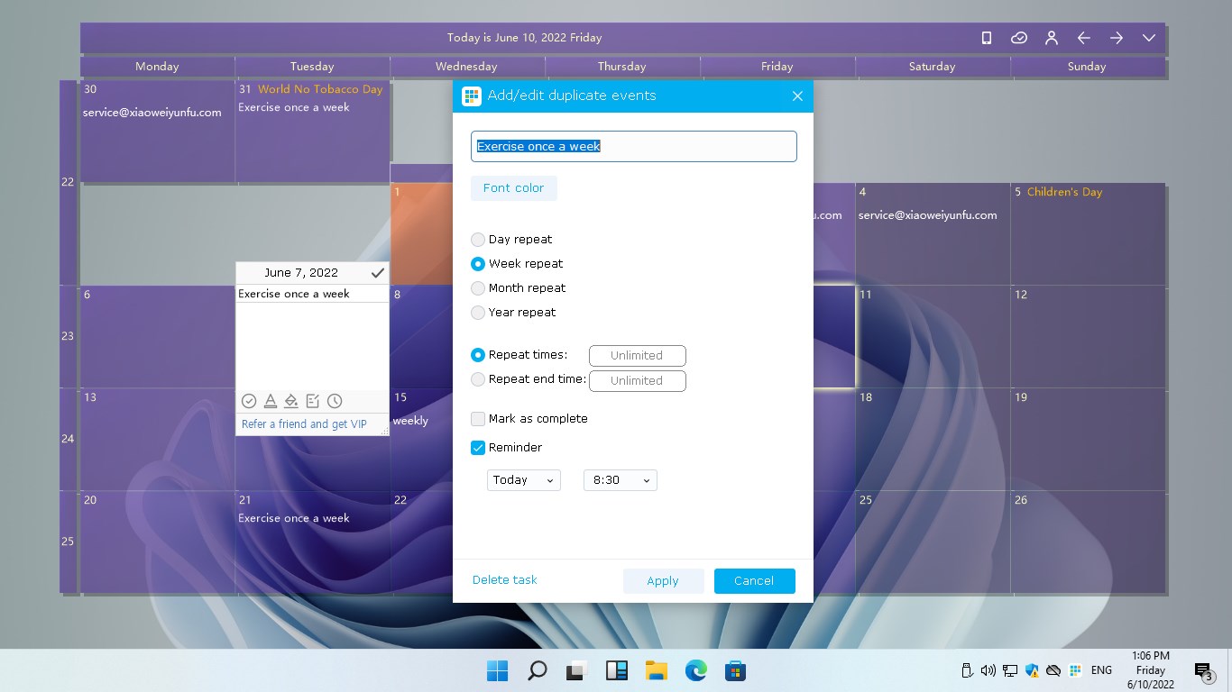 2. Double-click to edit and record trivia, schedule, repetitive tasks, etc.