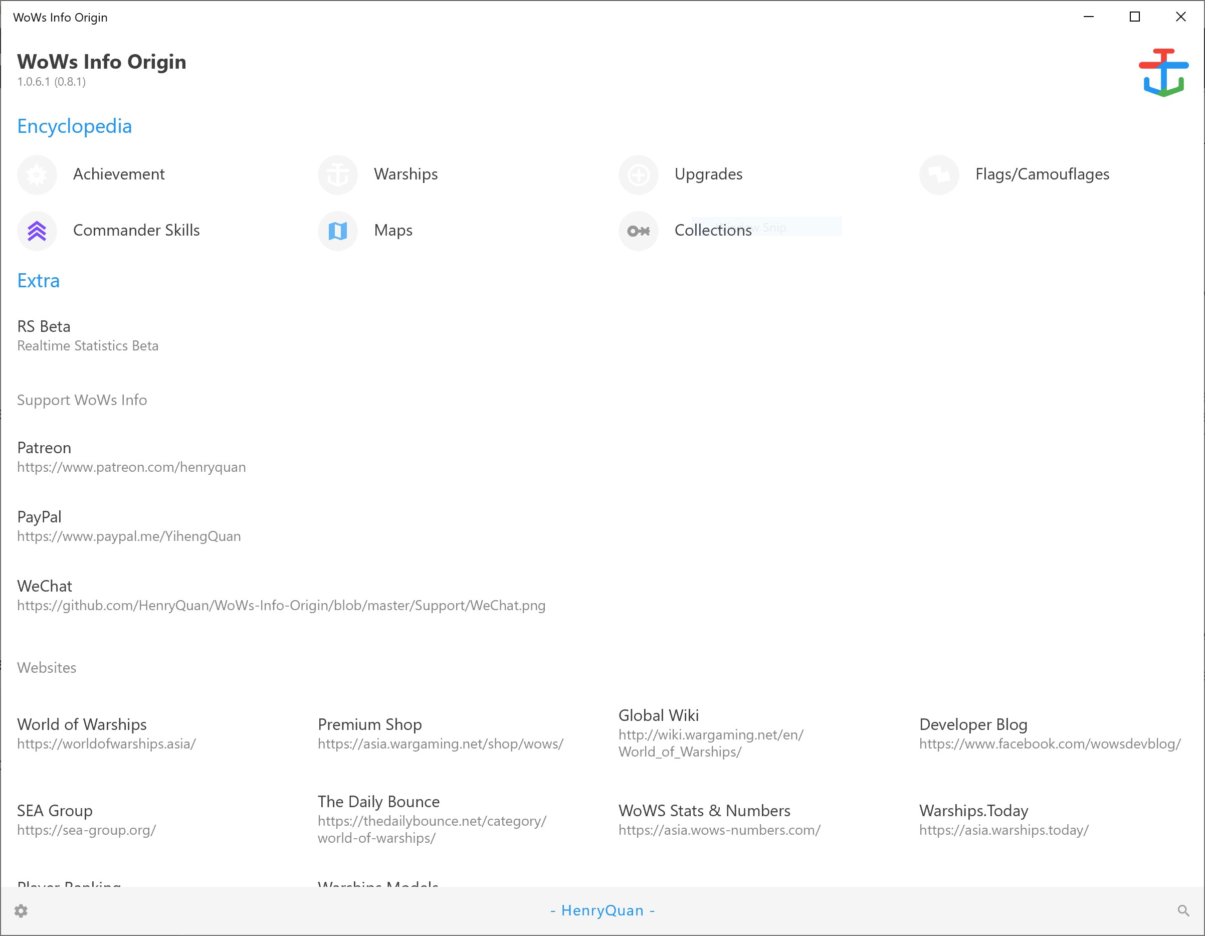 WoWs Info is an open source project created by me late 2016. It aims to provide all kinds of information for World of Warships, such as wows wiki, player stats, useful websites and so on.