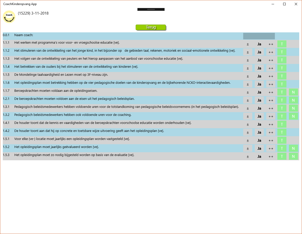 Met dit instrument kan een coach de kwaliteit van het werk van een beroepskracht in de kinderopvang beoordelen, verbeterpunten aanreiken, de rapportage gebruiken om verbeterafspraken te maken en om op grond daarvan de beroepskrachten te coachen.
