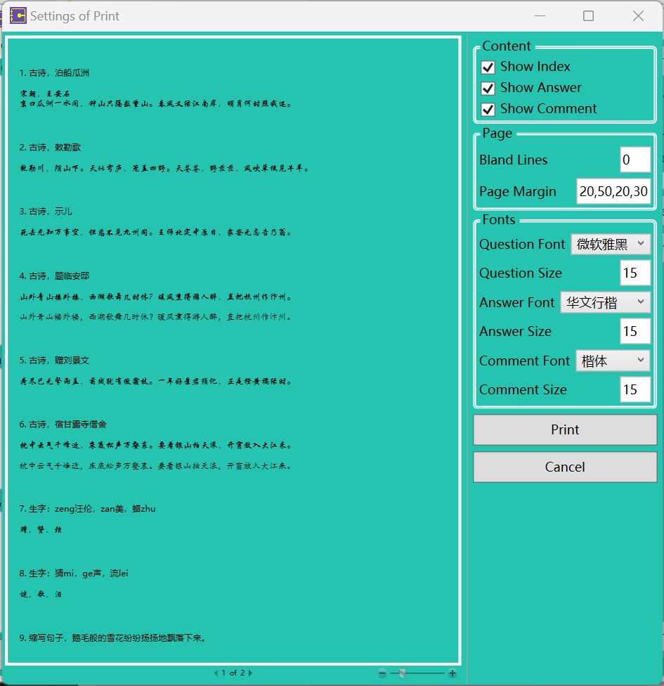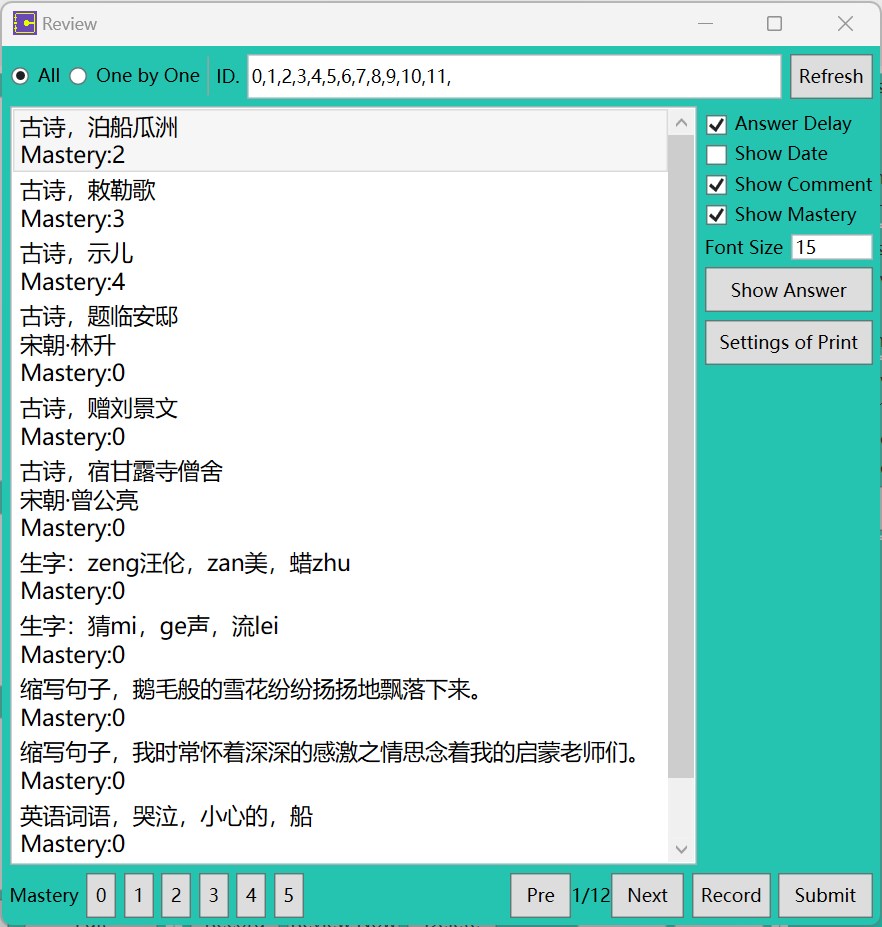 Compared with other knowledge memory software, the main function of this software is more focused on printing out the content to be reviewed at one time, so as to check the actual mastery.