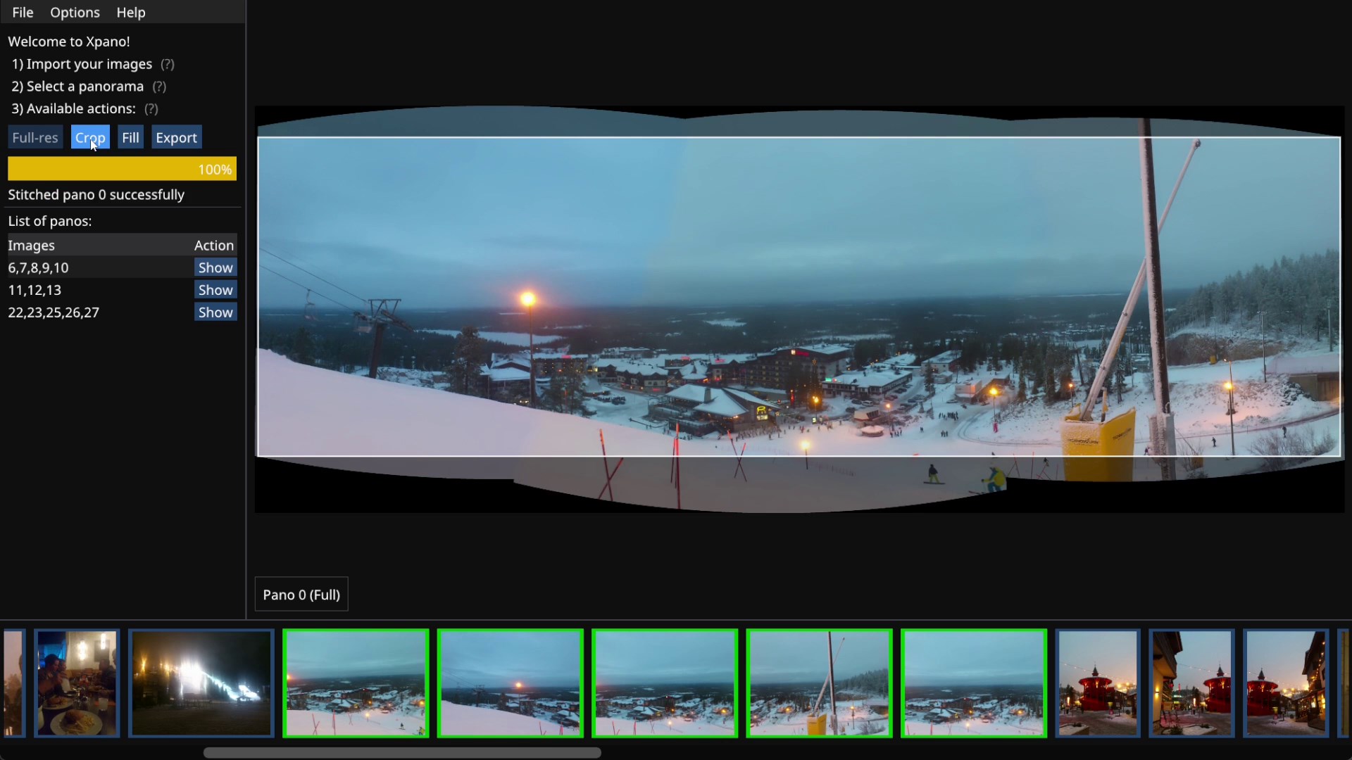 Xpano lets you import your images and then it auto detects groups of images to stitch into panoramas.