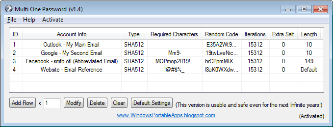 Multi One Password is a password manager that allows multiple random passwords to be generated with one unique password.