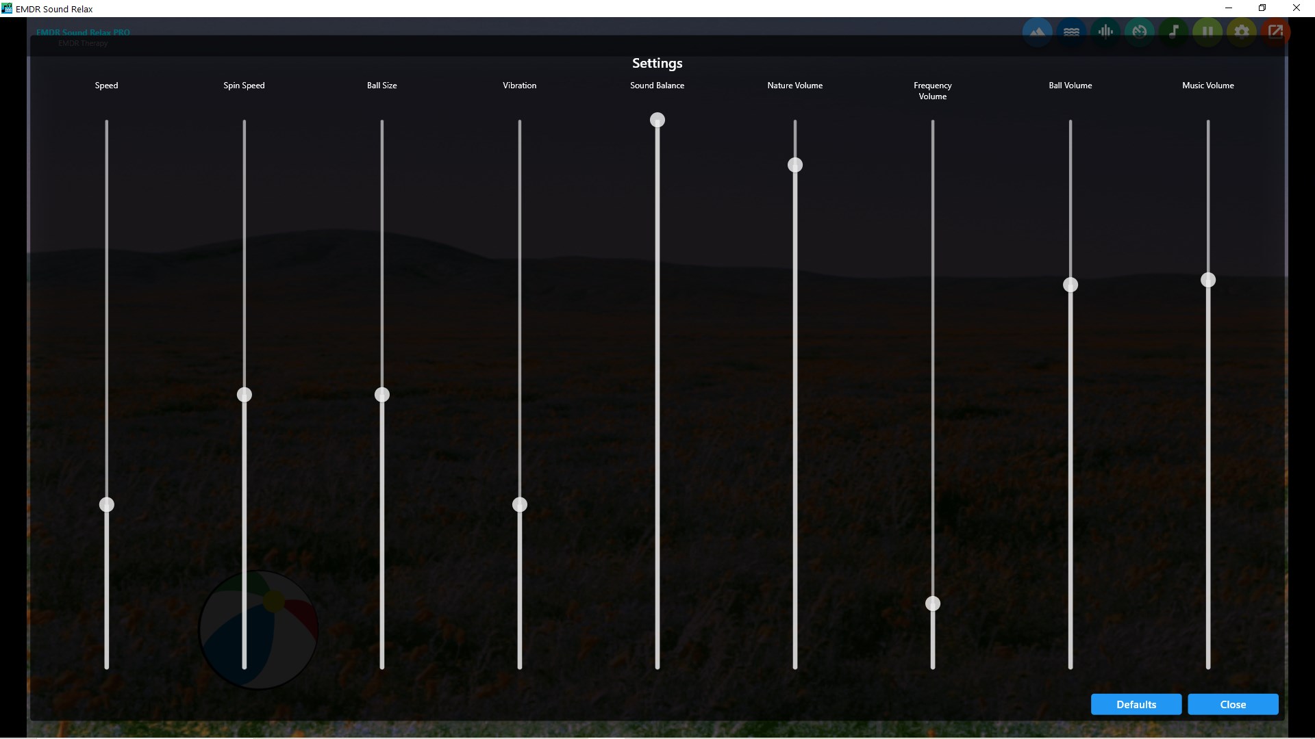 Advanced Settings: Take control with advanced settings for ball speed, audio balance, vibration, volume control of solfeggio frequencies and nature sounds, and more. Ball size and ball spin speed settings are available on Pro version!