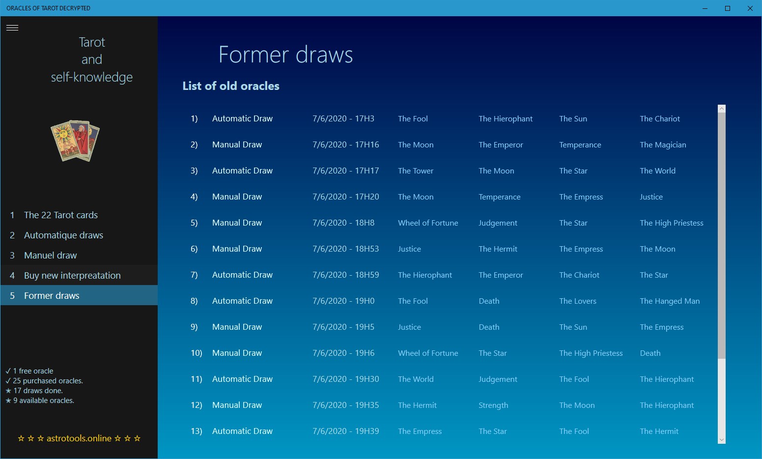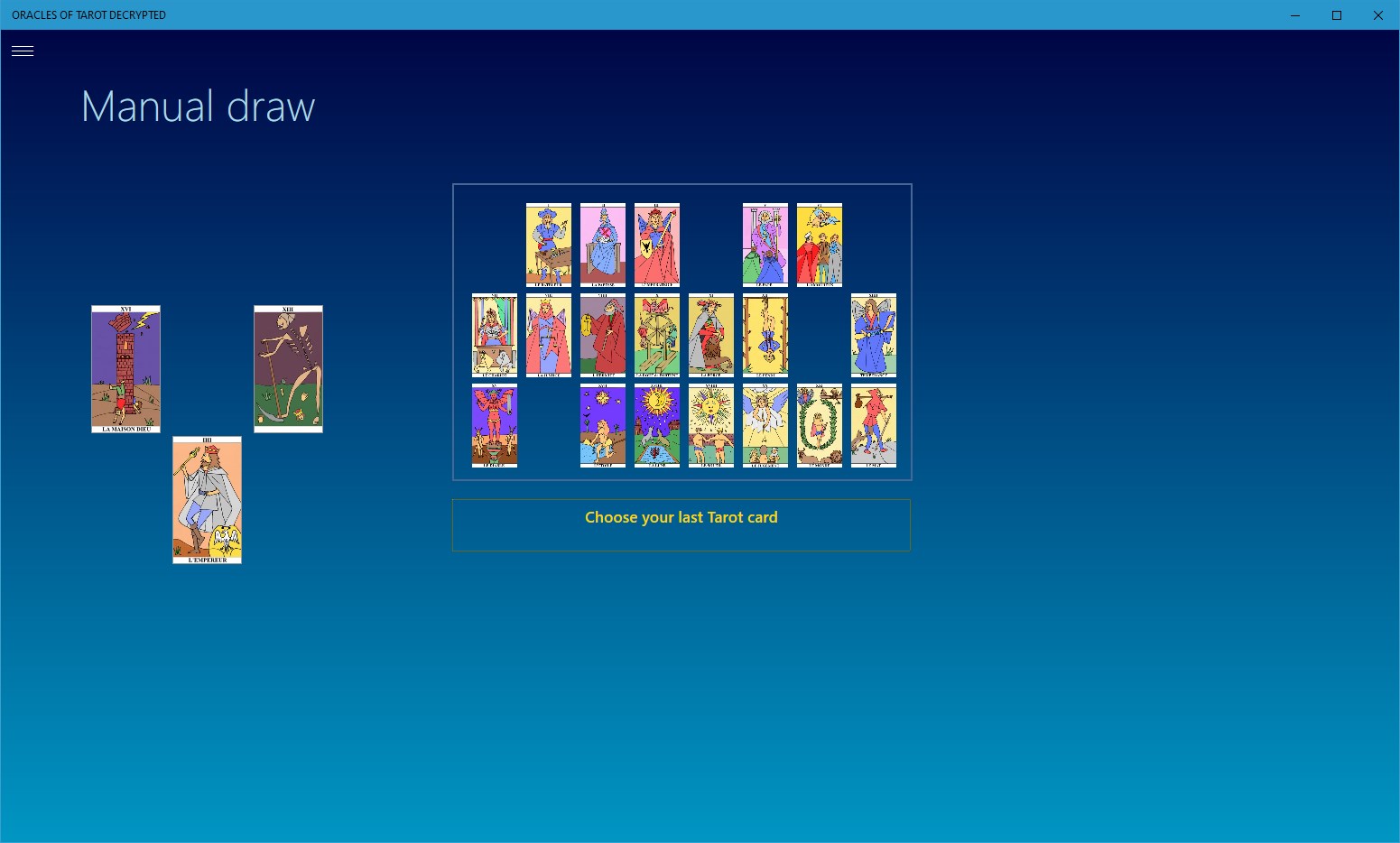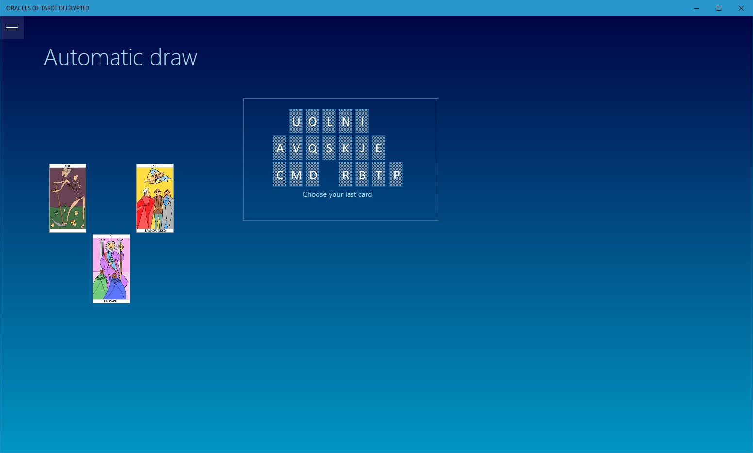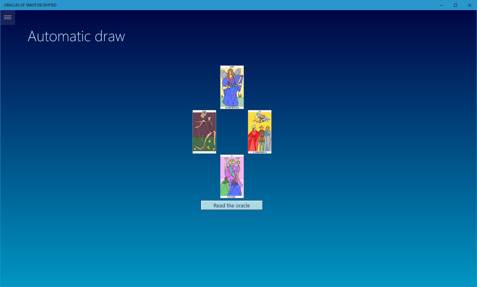 This demo version allows you to make a run of the cross draw and an astrological draw.