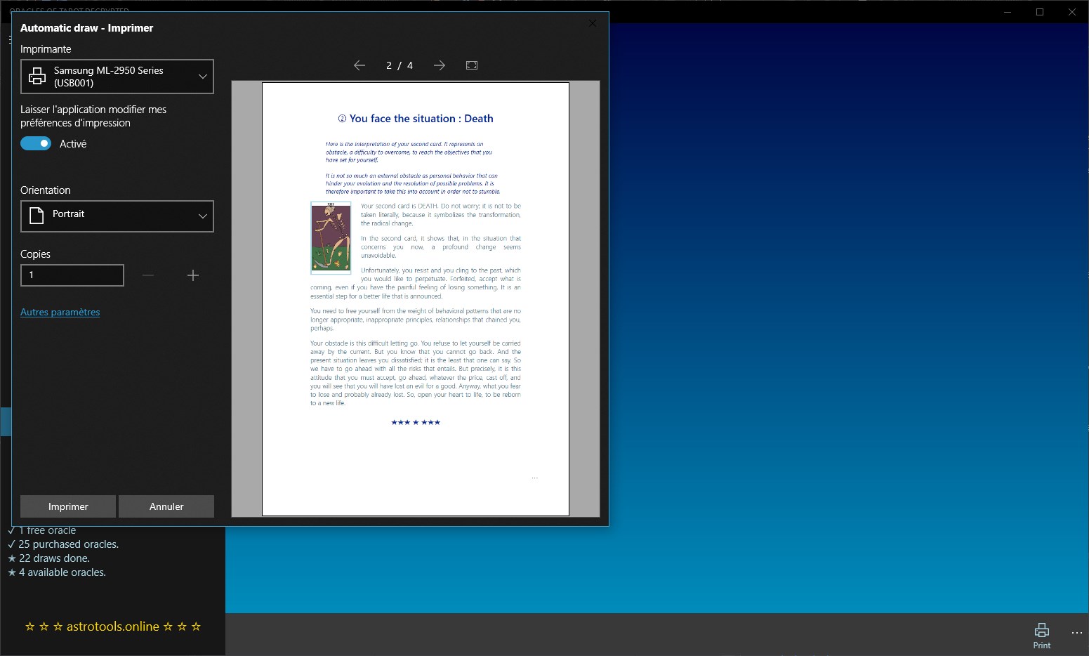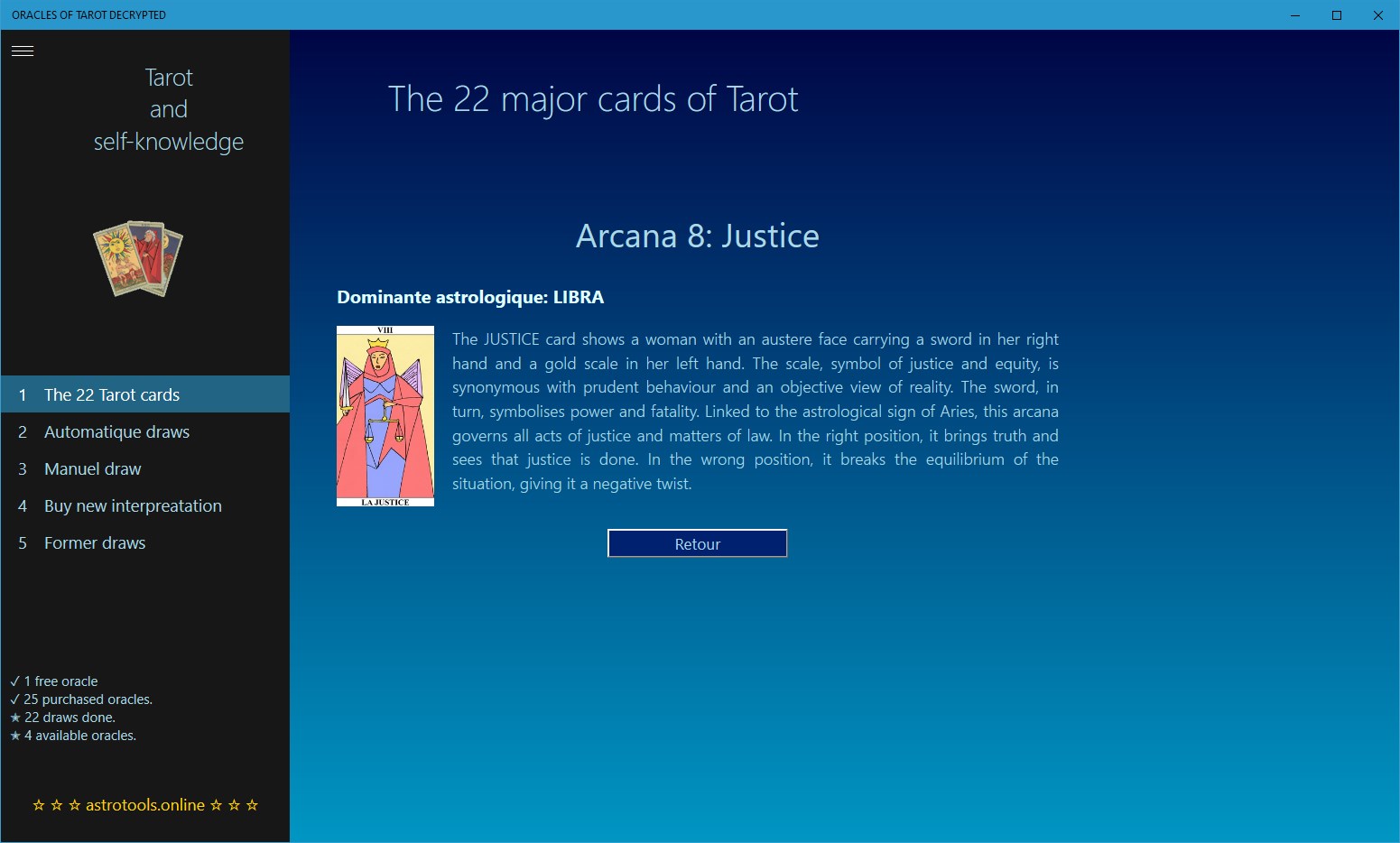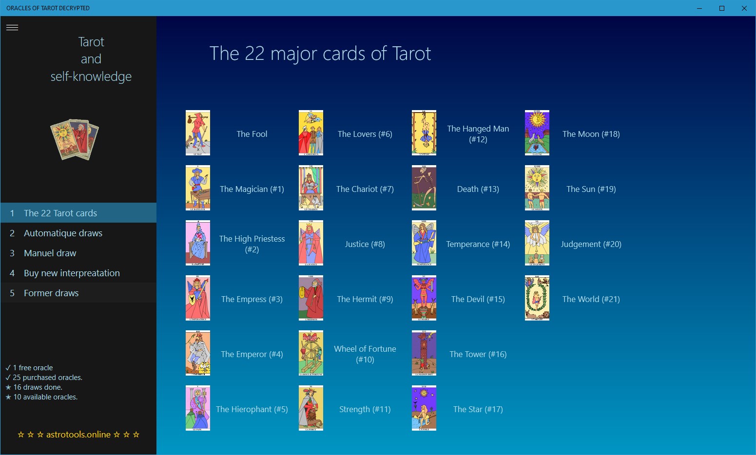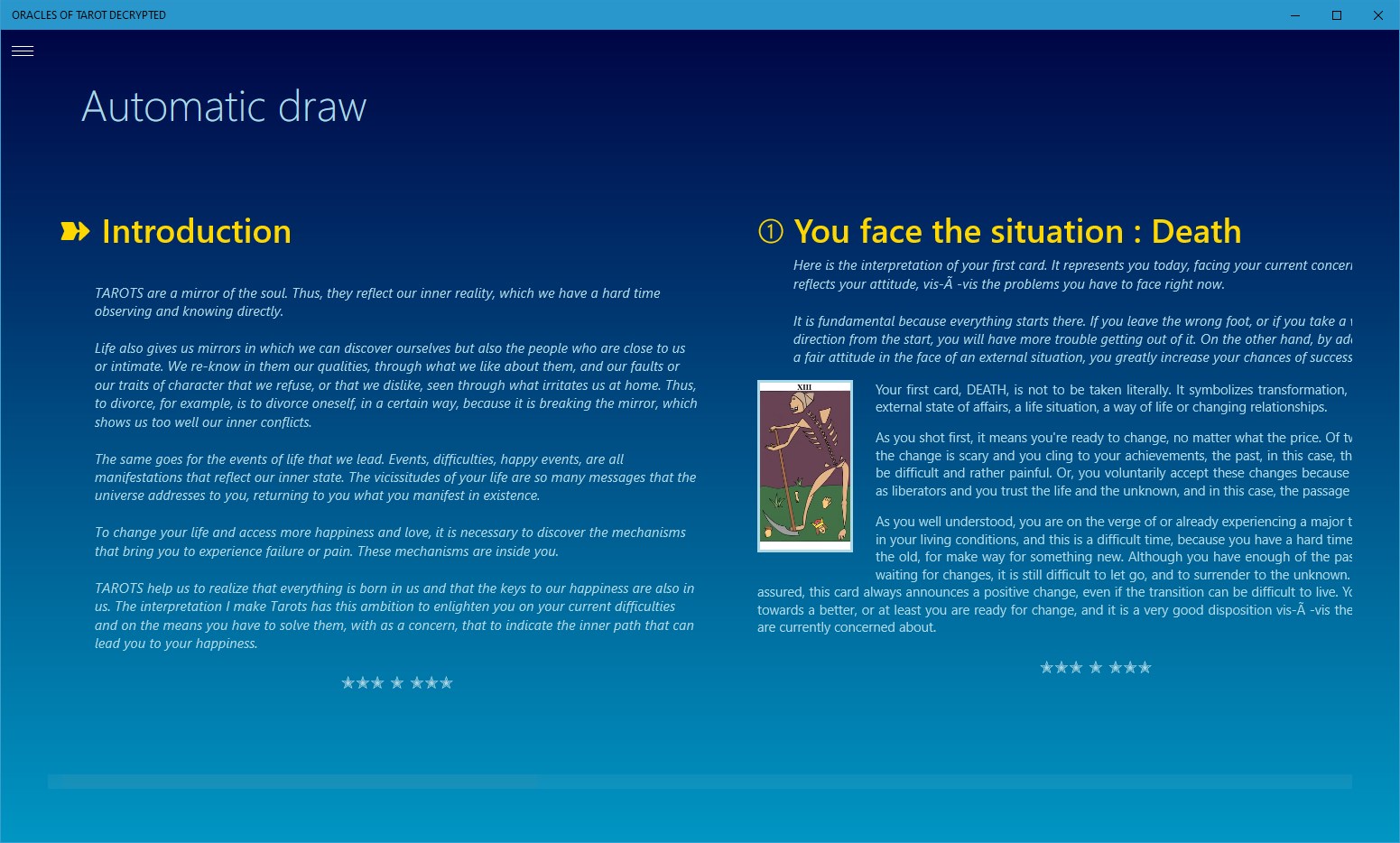 This demo version allows you to make a run of the cross draw and an astrological draw.