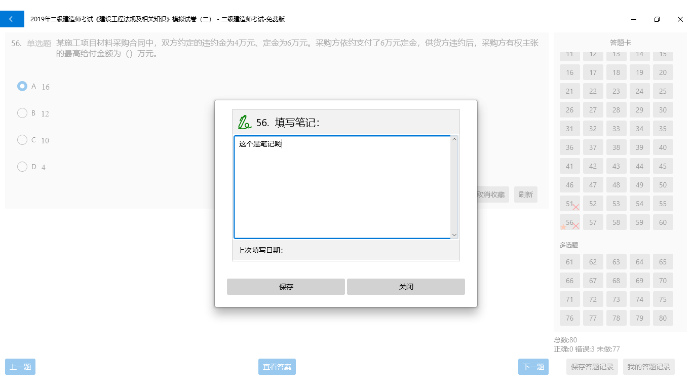 7. 填写试题笔记,试题笔记总览。并可定位到试题