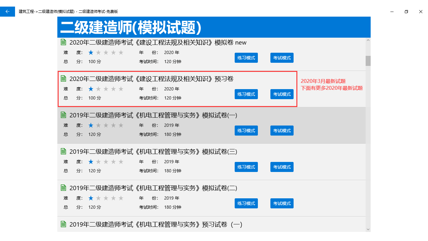建设工程法规及相关知识、机电工程管理与实务、公共科、公路工程管理与实务、建设工程施工管理水利水电工程管理与实务、矿业工程管理与实务、建筑工程管理与实务、市政公用工程管理与实务历年真题+模拟试题,题库非常多