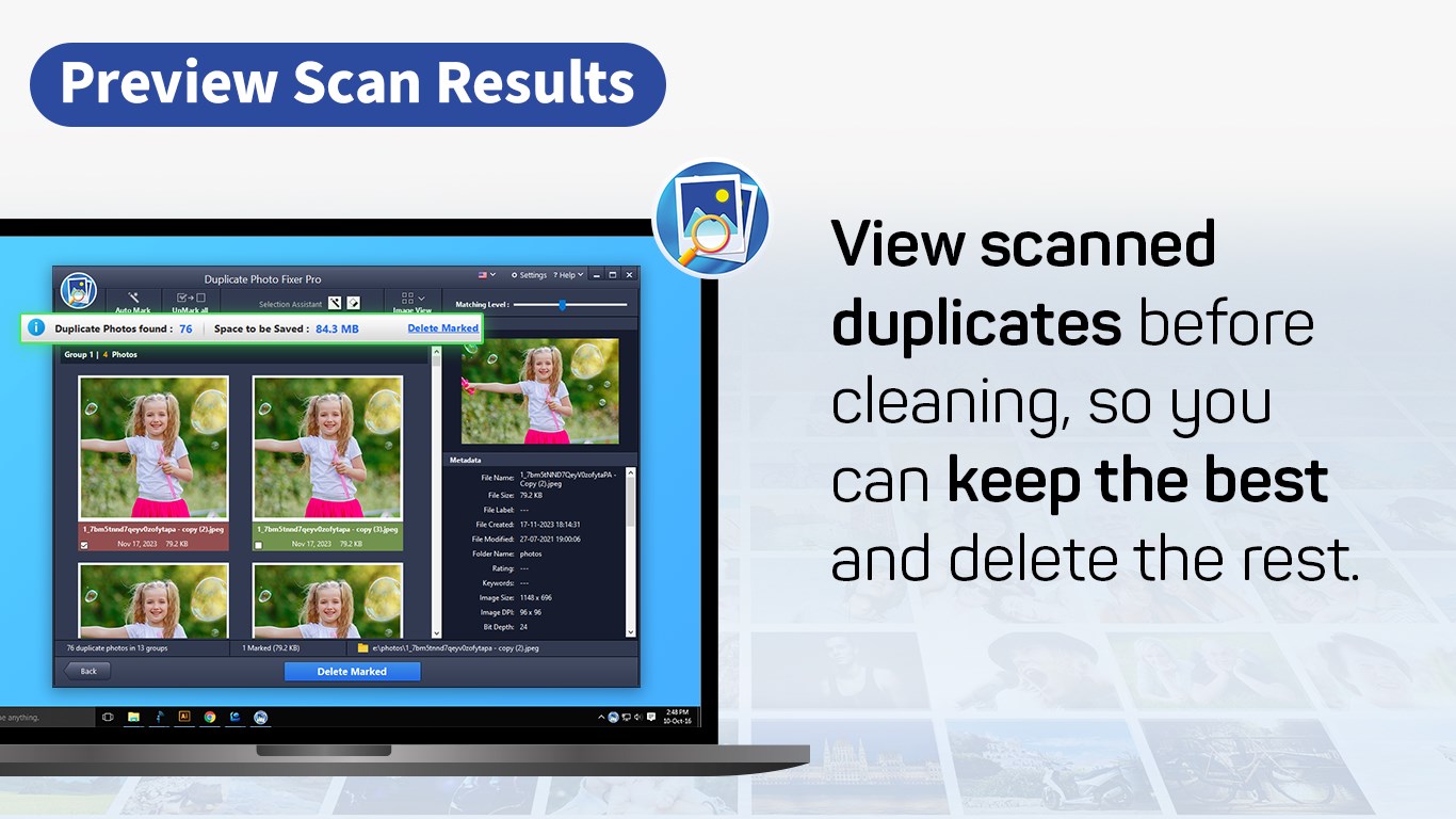 With the help of this Windows duplicate photo cleaner, you can effortlessly find and remove duplicate images, preventing unnecessary storage space consumption by redundant photos.