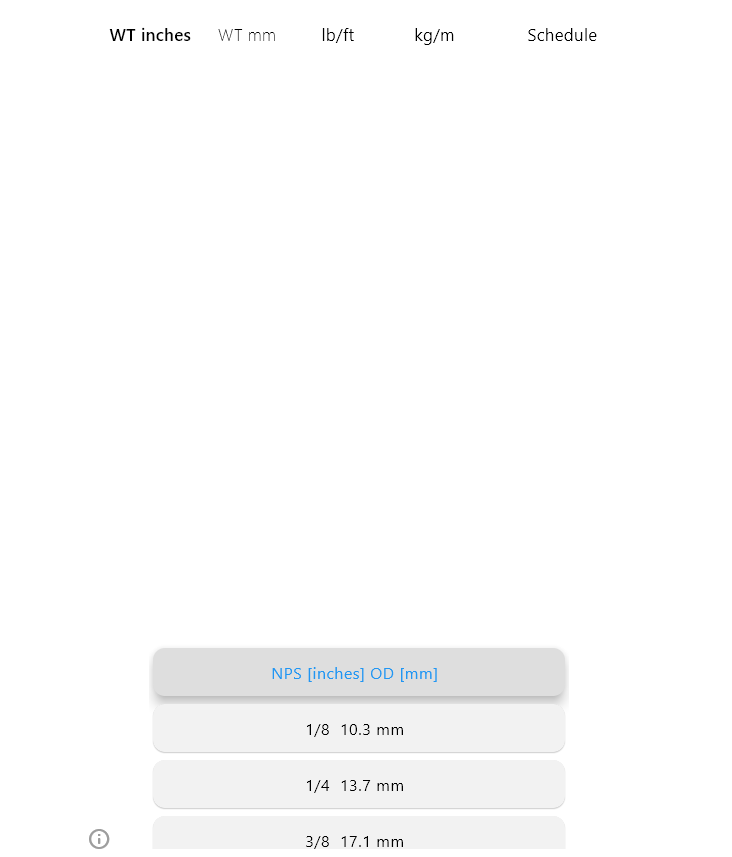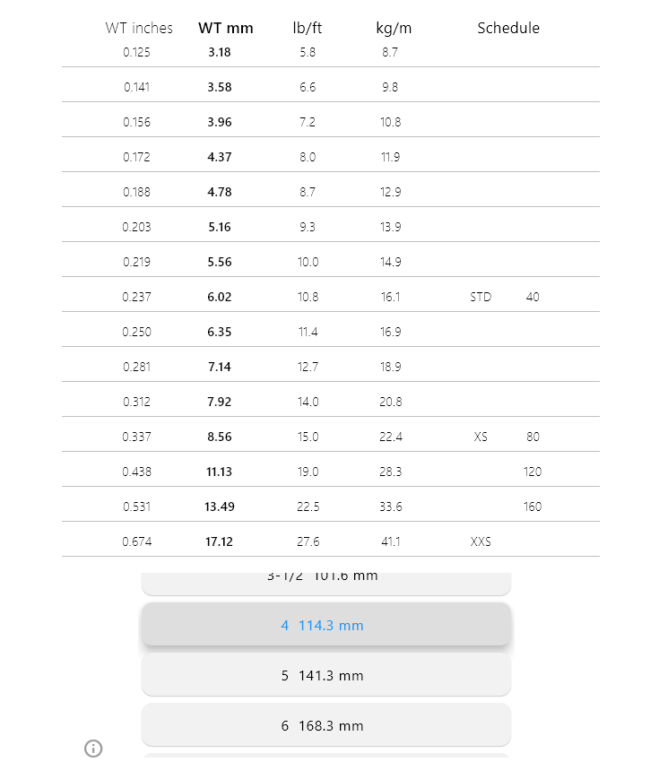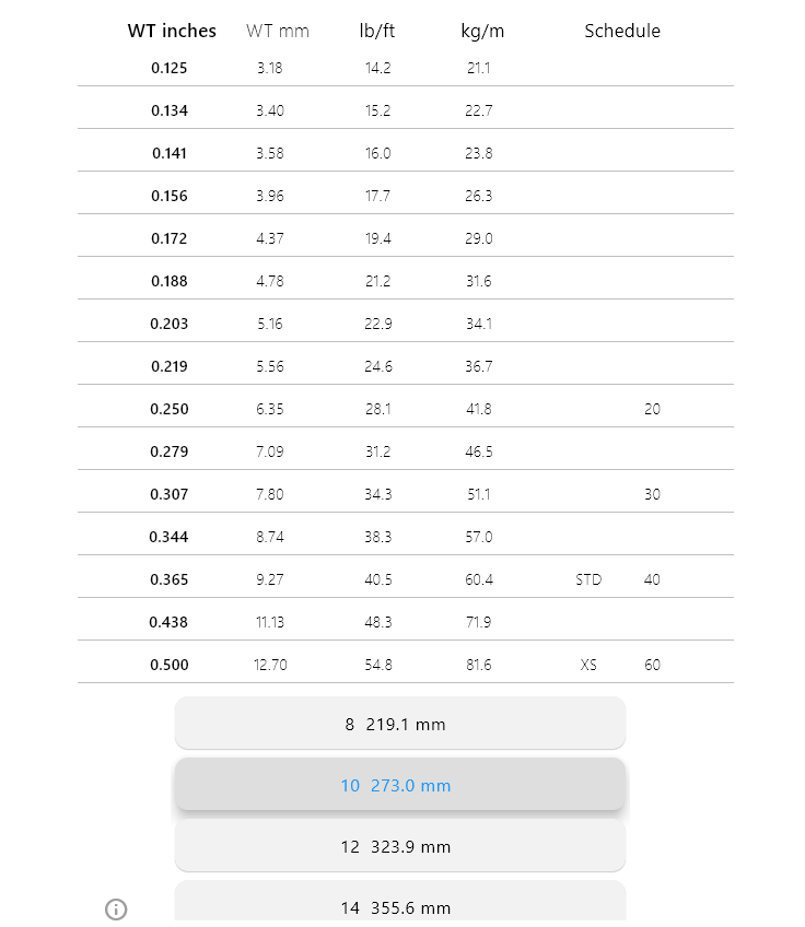 Nominal Pipe Size [NPS] steel pipeOutside diameter Wall thickness in inches and mm