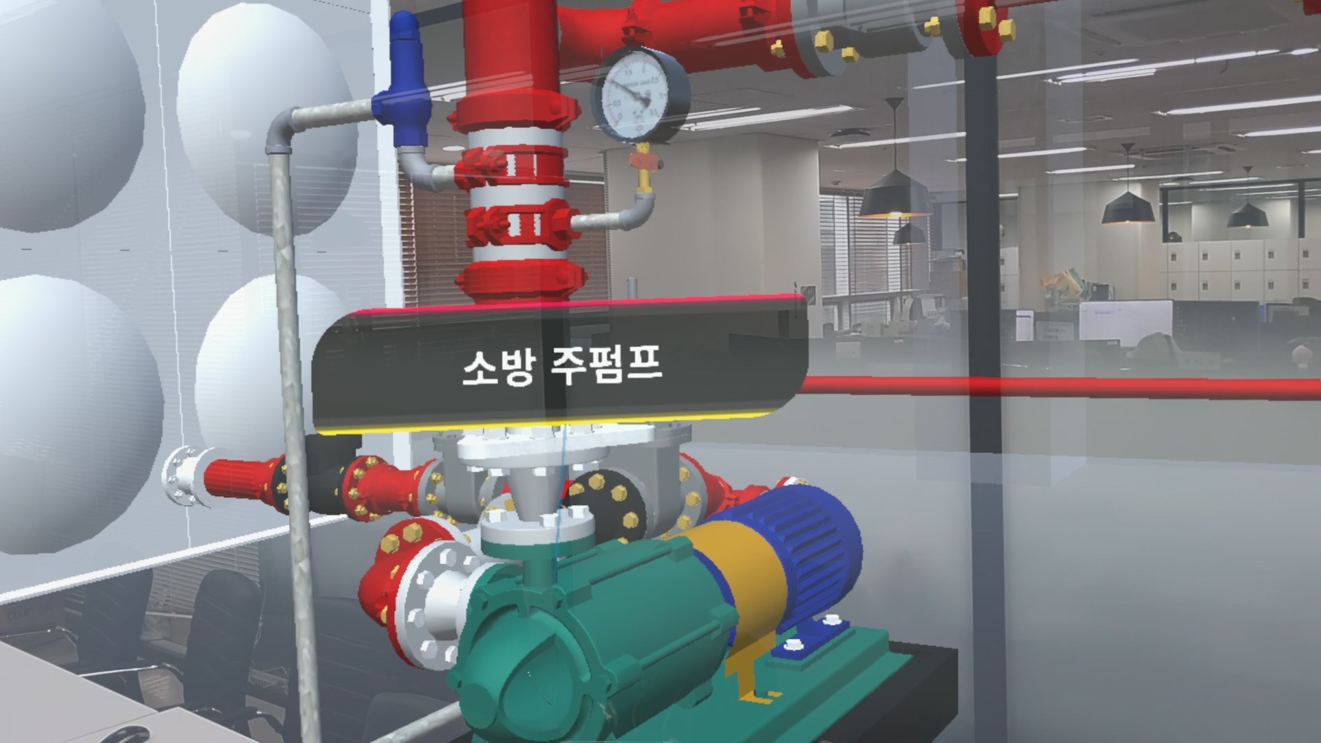 The XR-based firefighting facility inspection and operation simulation system is educational content on how to inspect and operate firefighting facilities.