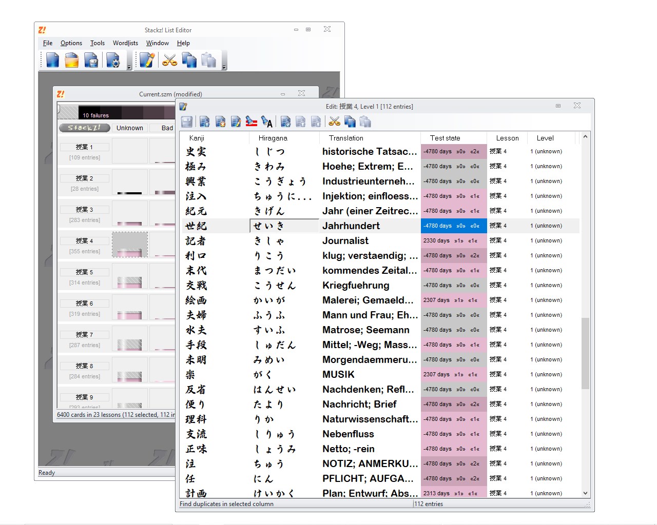 Create and modify wordlists of the Stackz flashcard system.