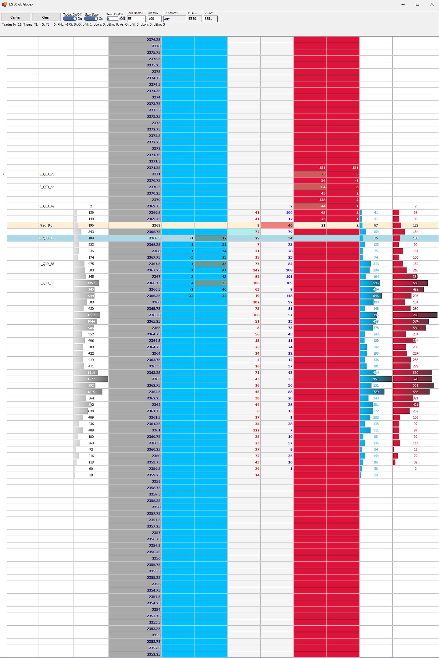 Depth of Market order flow player and order execution.