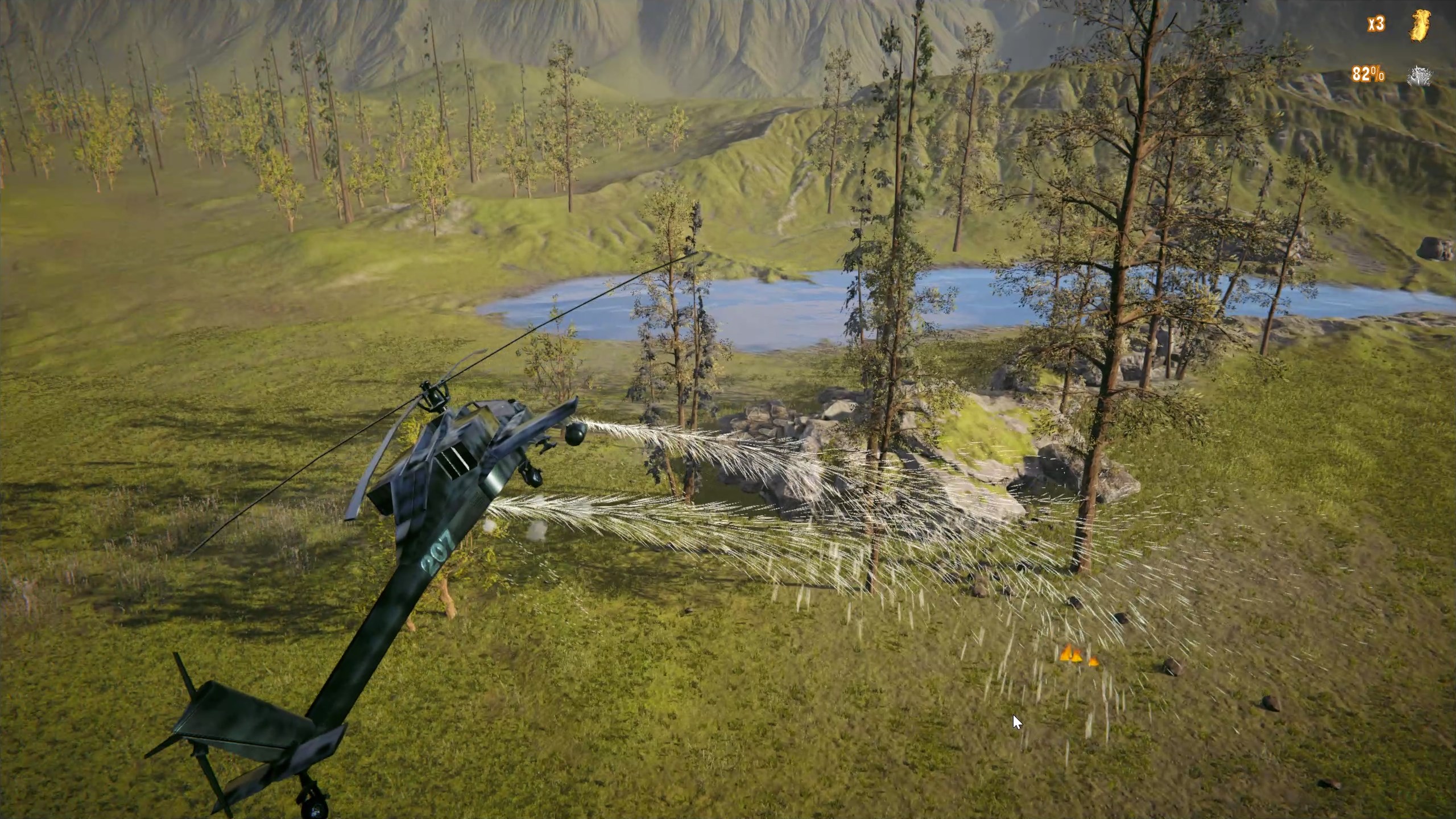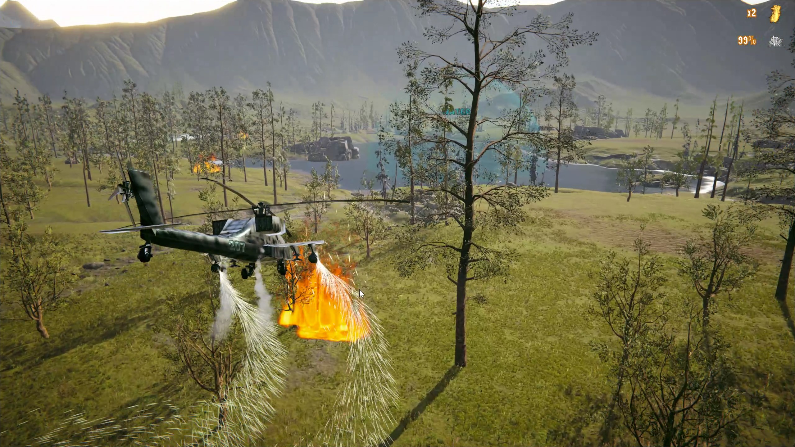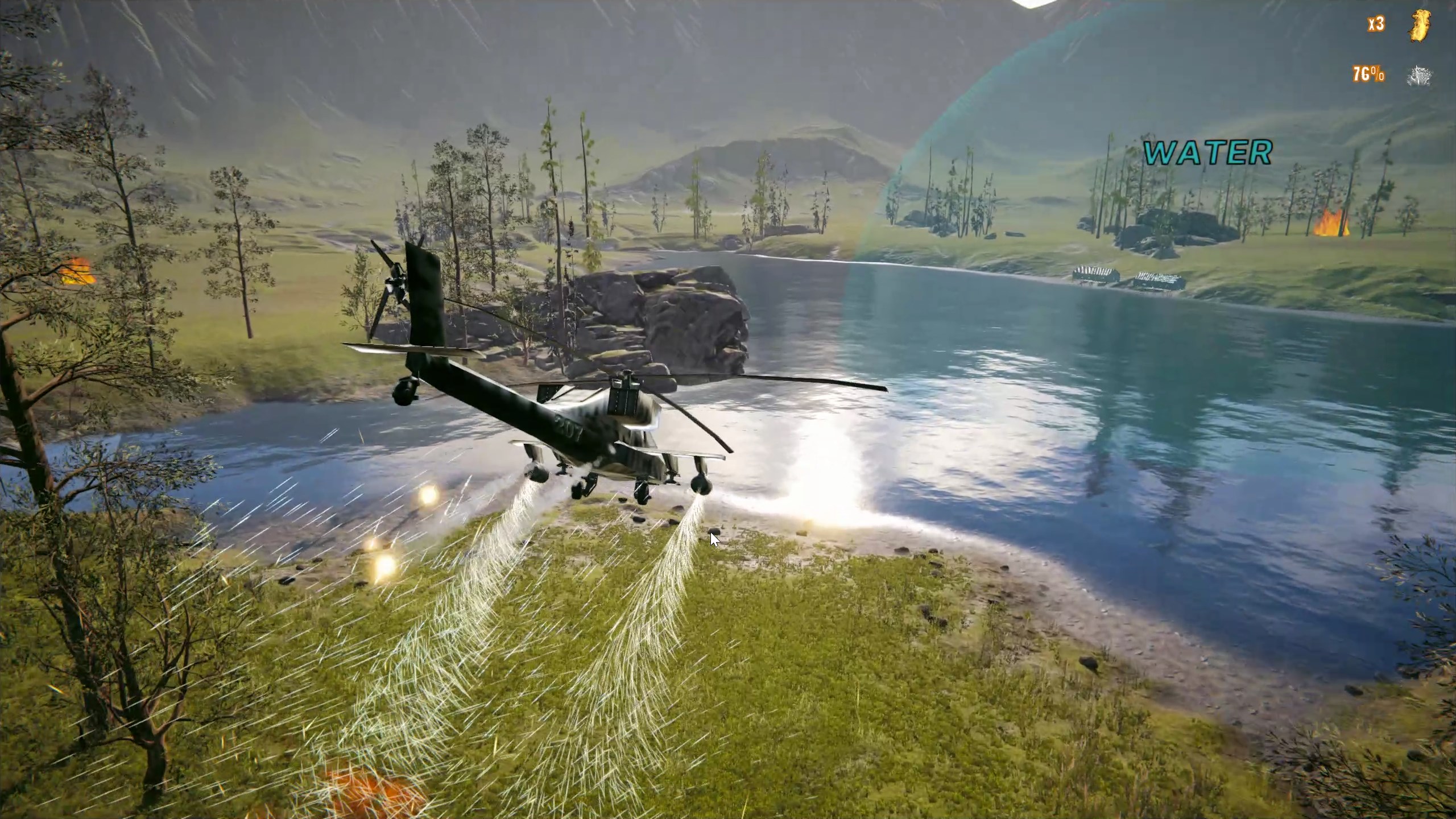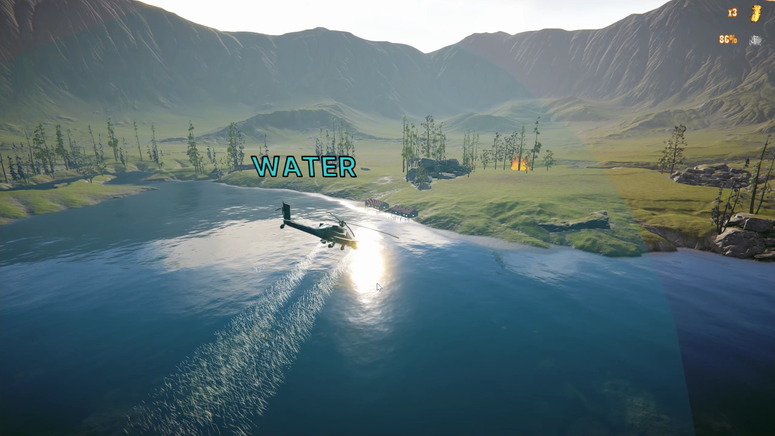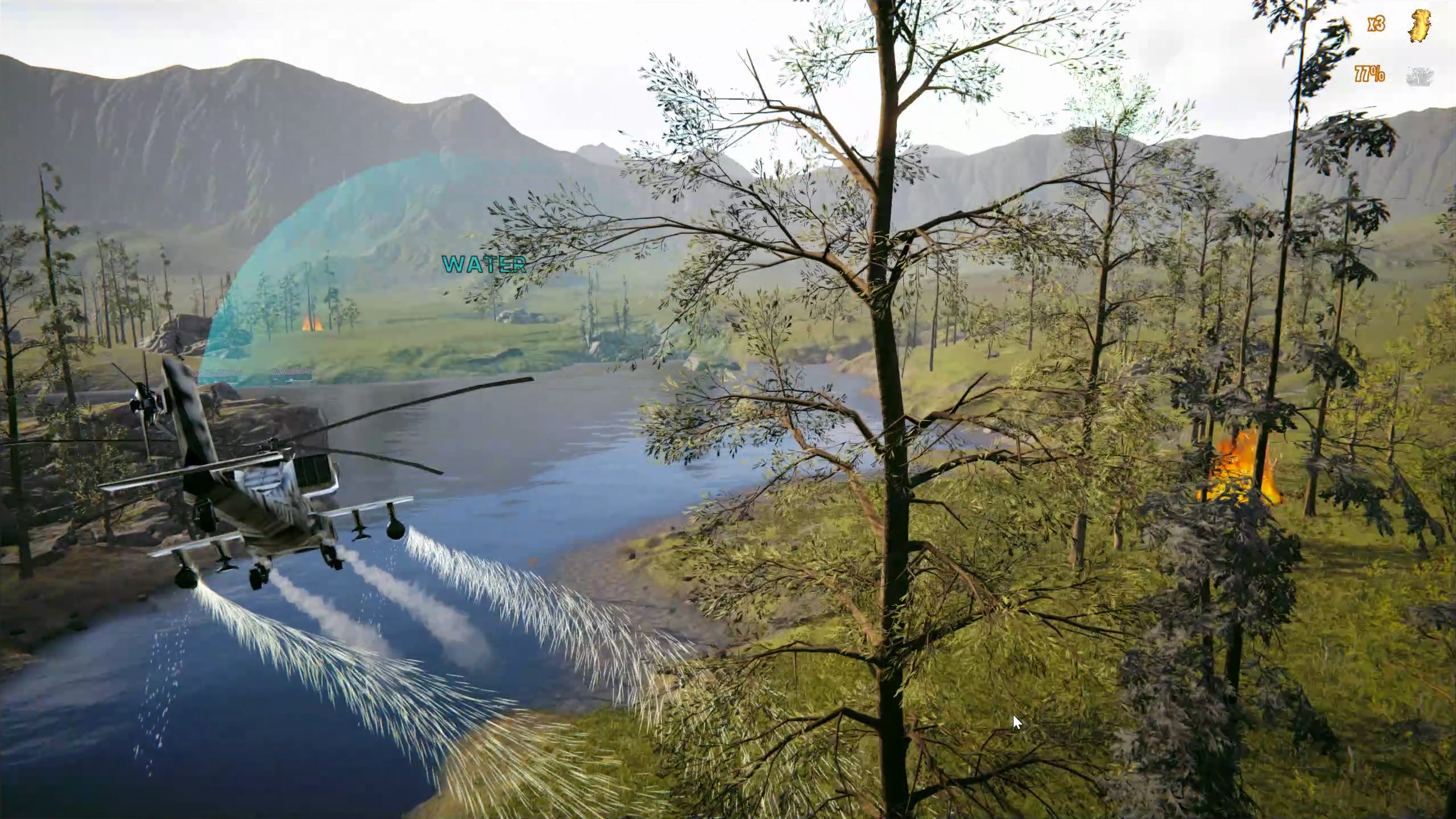 Wildfires spread across the whole lake area. Your task as an experienced helicopter pilot is to bring help to the citizens nearby.