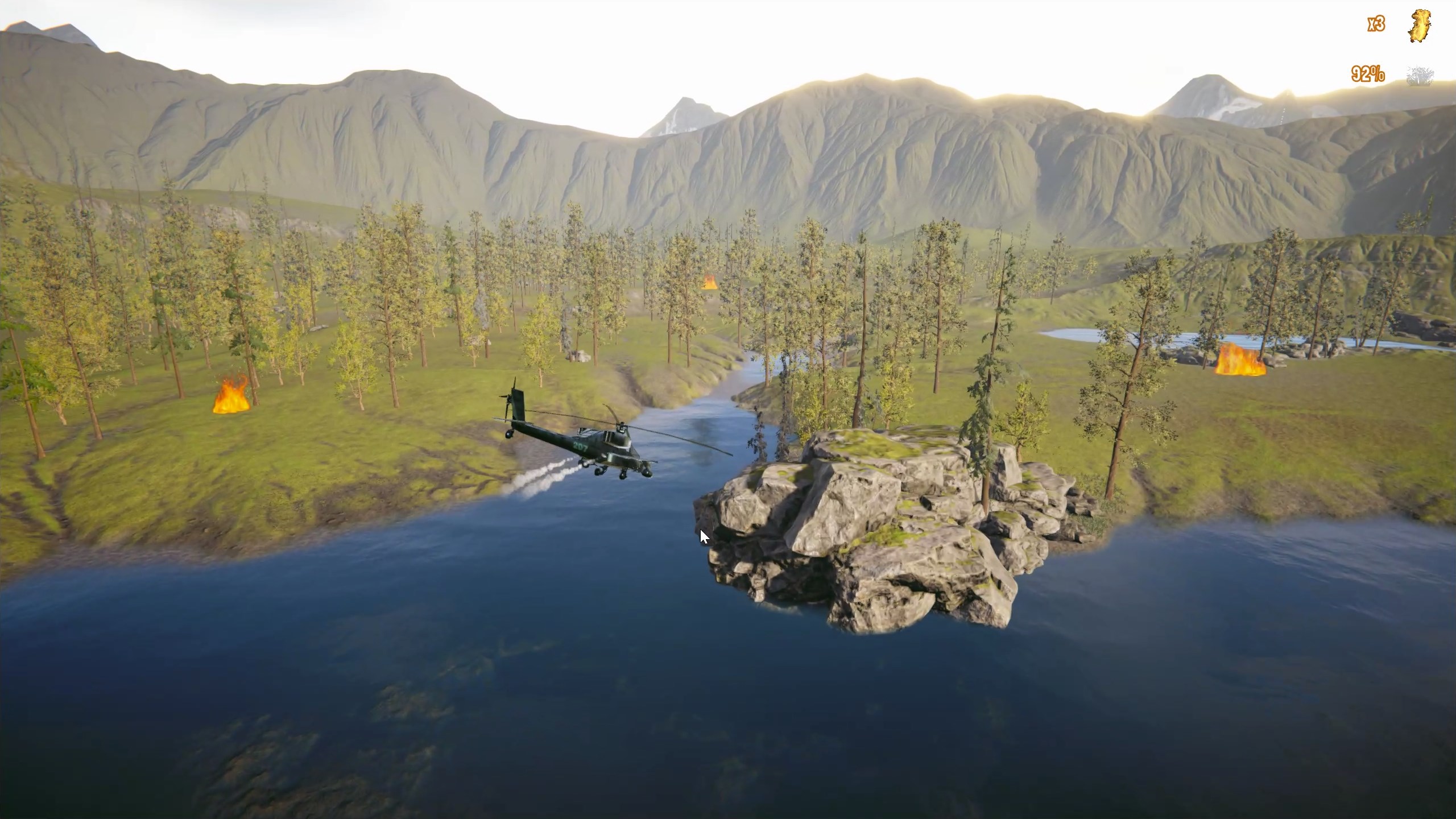 "Helicopter Fire Rescue" is a single-player mini-game created for people of all ages. The gameplay lets you fly the helicopter, extinguish the fires, and admire the beautiful views of the forest, lake, and mountains.