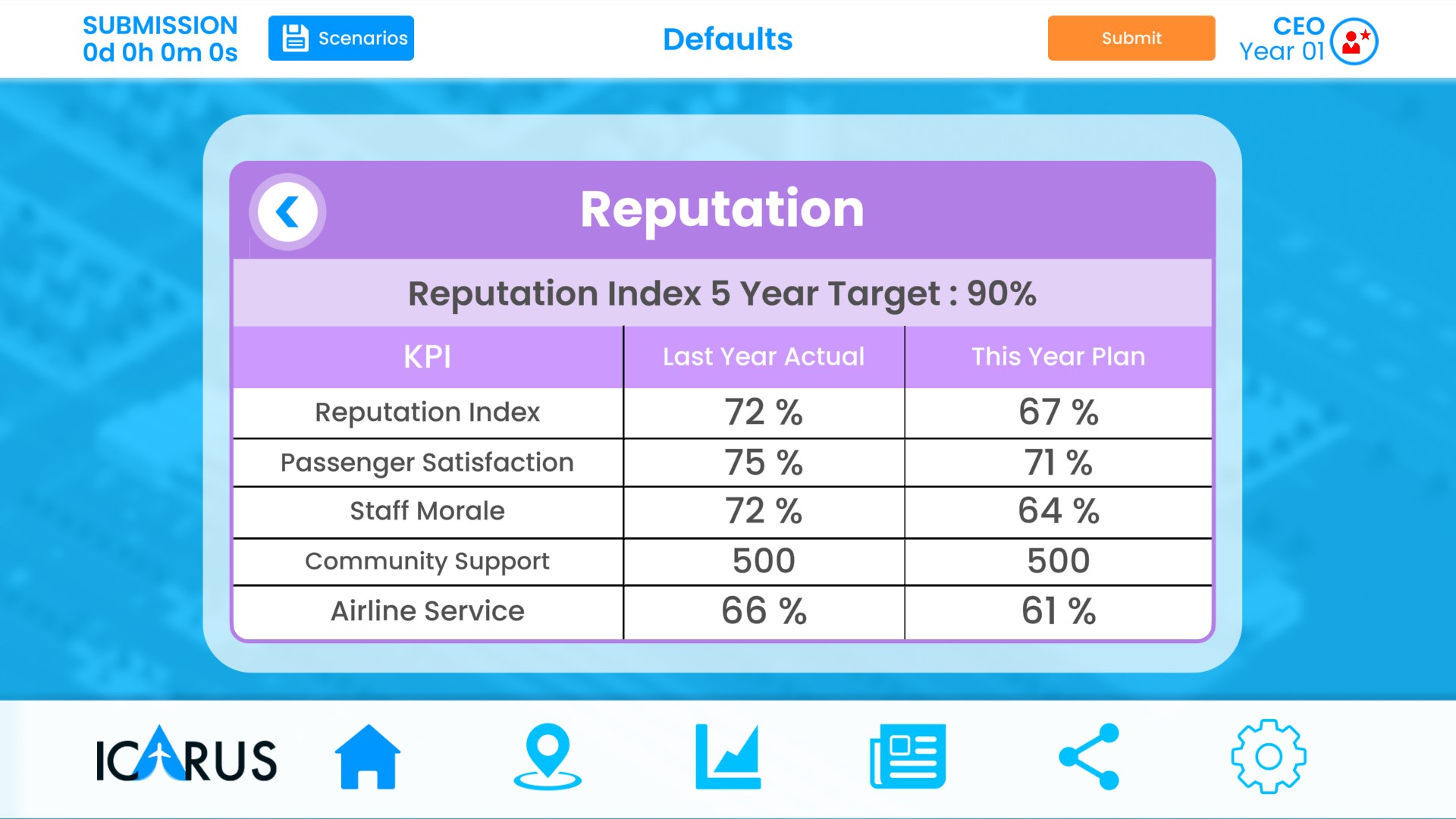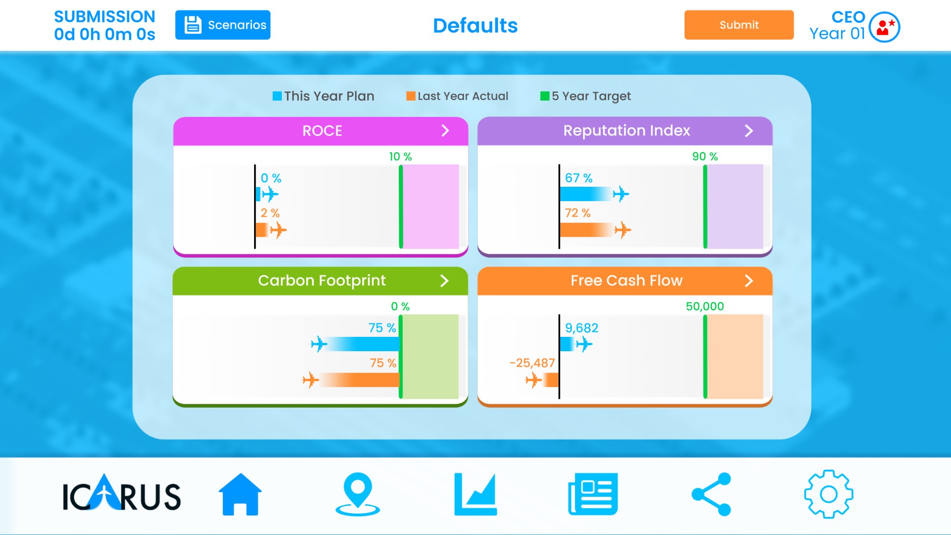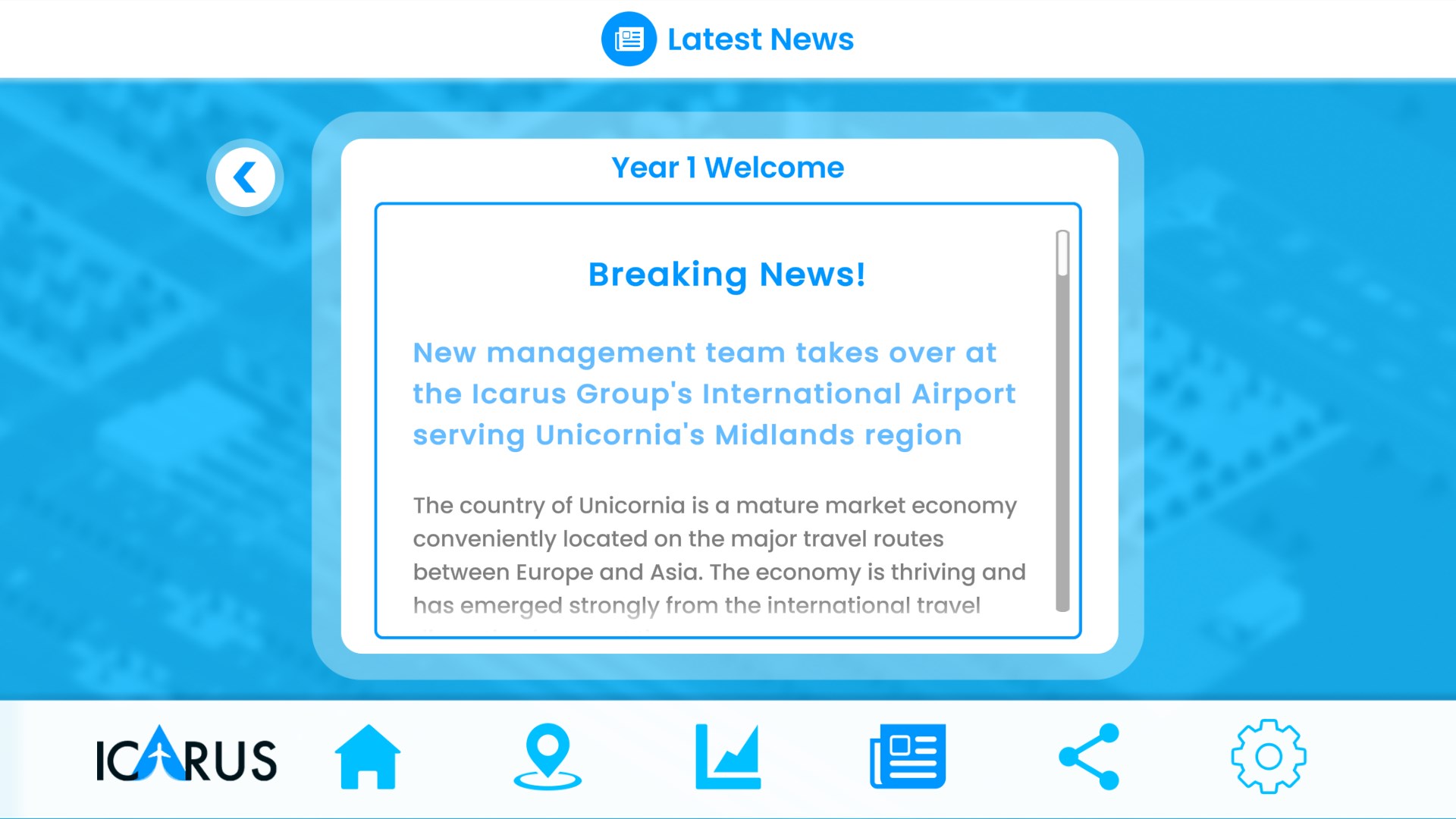 Major App Updates - the Icarus Airport Simulation is now even more comprehensive, including new metrics and KPIs looking at environmental factors, carbon footprint, and updated pandemic factors. Teams also have access to new news and reports through the app, all reformatted and landscape optimised with new KPI charts and dashboards for teams to track their progress. Let\'s fly!
