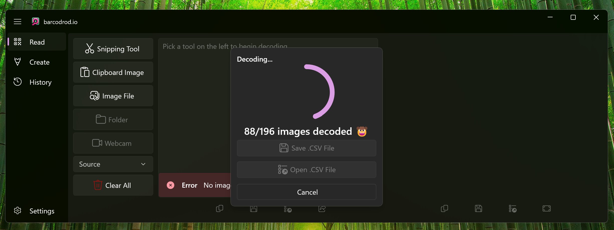 • A folder on your PC to decode images in bulk and export the results to a file.