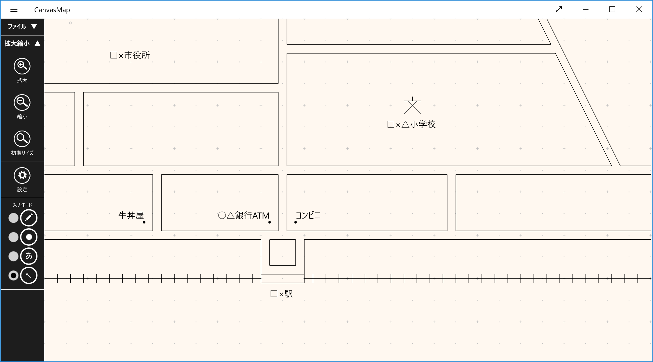 線と点と文字からなる簡単な地図を作成することができます。 作成した地図はHTMLに変換することができ、簡単な検索機能がついています。 スマホで表示することも可能です。 QRコードを使って地図をスマホにダウンロードさせ、検索する。という使い方を想定しています。 (QRコード作成機能はありません)